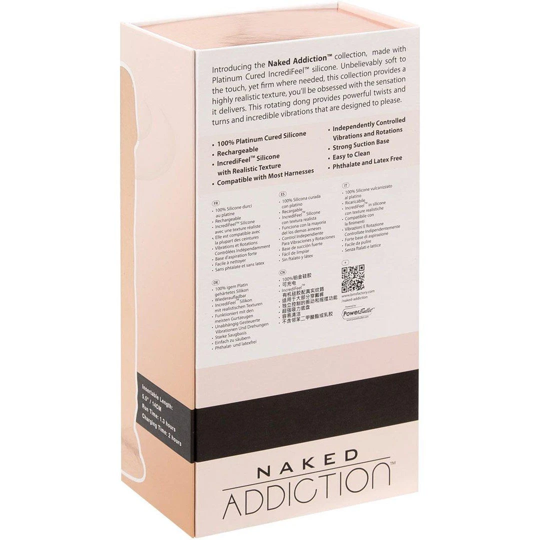 Prepare to meet your new ‘naked addiction’: this rotating and vibrating dong with hyper realistic textures and veins, ready to please when you want it. With IncrediFeel technology, this superior silicone has an ultra-realistic feel – unbelievably soft to the touch, yet firm where needed. You’ll be obsessed with the sensation it delivers. With a full 360 degrees of rotation and strong penetrating vibrations, this bad boy is sure to reach all your sweet spots!