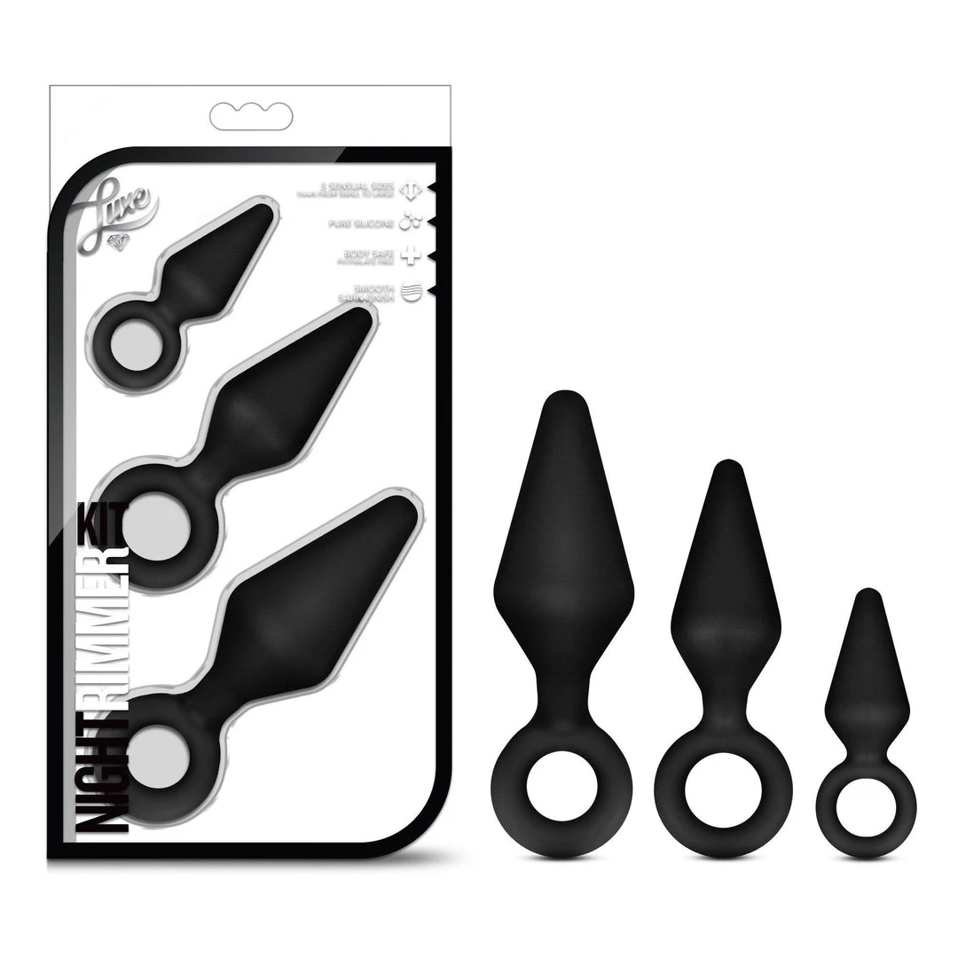 Want to spice up your anal play but need a little training? This itty-bitty plug is a favorite for most beginners and experts alike, and comes in a kit of multiple sizes and is offered in 2 luxurious colors! The satin finish is deliciously smooth, and the conical design is comfortable to insert. To top it all off, the ring-shaped base keeps it safely in place and allows easy manipulation by you or your partner. These are training wheels you won’t want to take off!