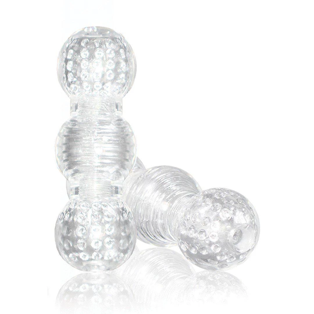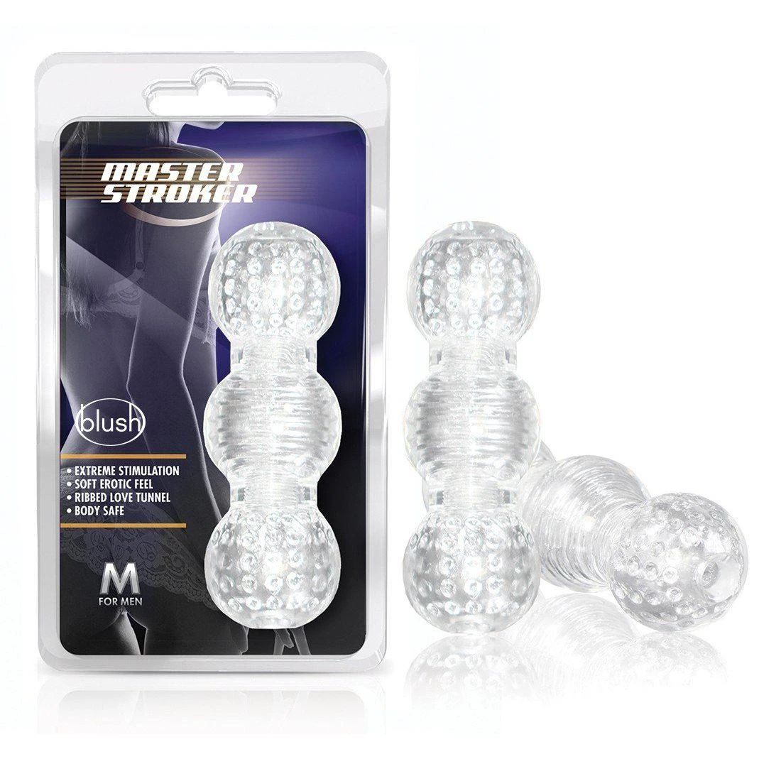 Make it thicker, longer and stronger with this bulbed, pleasing stroker! This stretchy male stroker accommodates all shapes and sizes. Simple to use in three steps: just stimulate, insert and stroke. Repeat step 3 for an erotic release! Each compartment features an individual texture for extreme stimulation. With its clear design, stroking can be a visual simulator for you or your partner…watch as your erection swells and pulses inside the translucent compartments.