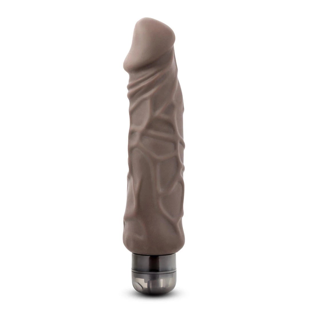 This dong pleases and fulfills all your erotic needs! Not for the faint of heart, this dildo measures 9.25″ from end to end and has enough girth to satisfy the most experienced, demanding lover and a veined shaft that vibrates!