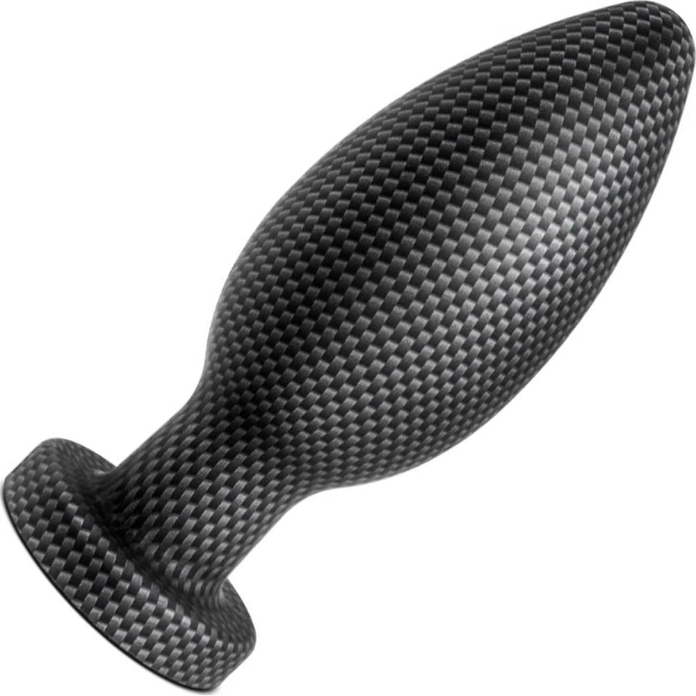 This carbon fiber pattern, premium silicone anal plug features a slightly larger girth and diameter than regular plugs, making it ideal for intermediate anal play, or for those wanting to up their stretch game while adding some length at the same time. A tapered, smooth insertion graduates across a 6.28 inch girth, with the narrow neck helping hold the plug in place. The flared, circular base features a nifty suction cup surface, enabling hands free and even harness play as an added feature!