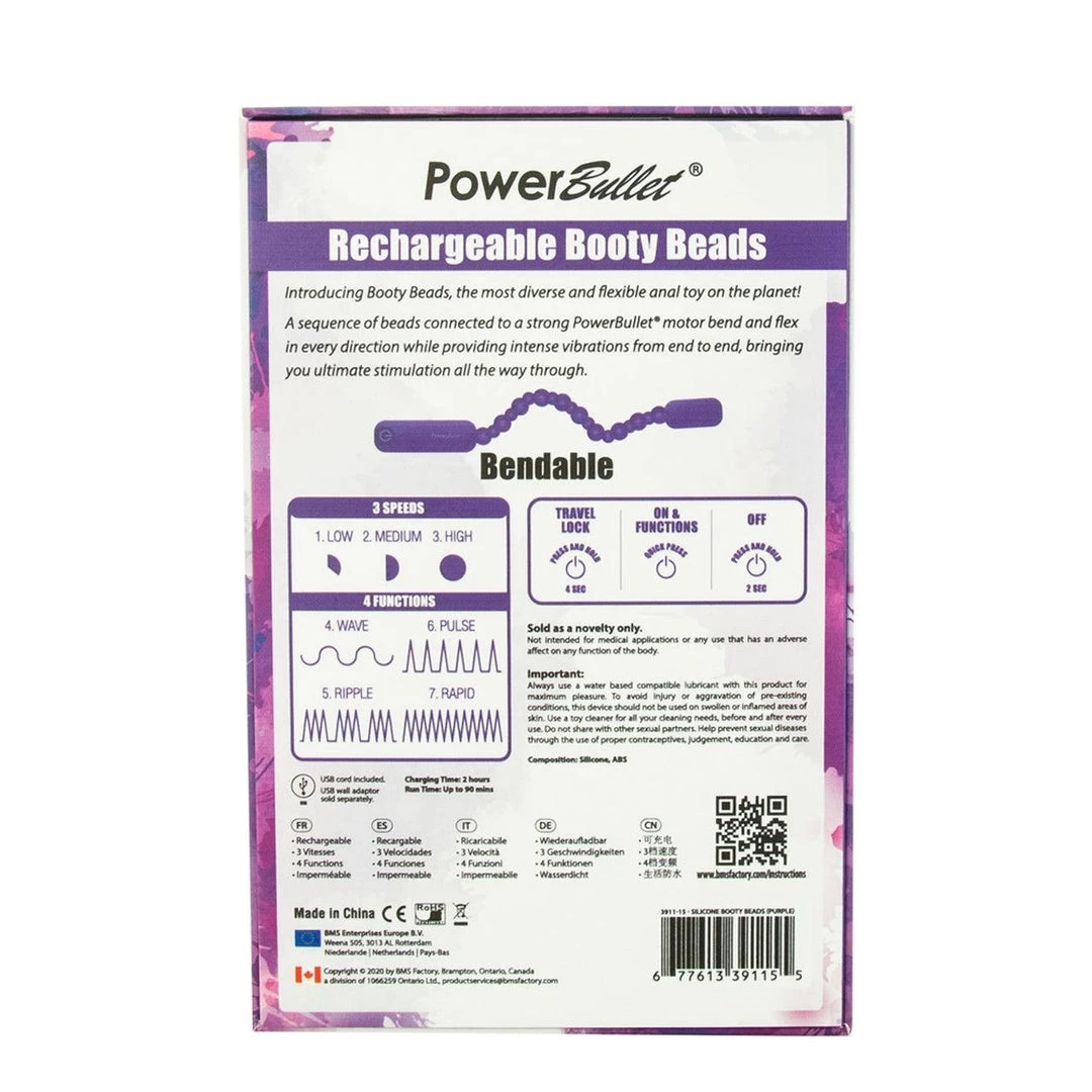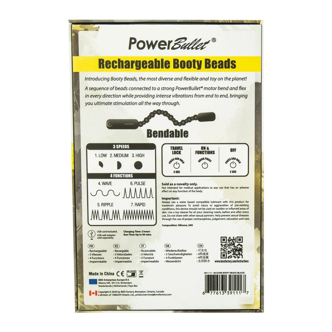 The Power Bullet Rechargeable Booty Beads are an impressive and exciting anal toy. The anal toy is a series of differently sized beads connected and powered by the Power Bullet, getting the vibrations from the vibrating bullet throughout the length of the Booty Beads. The beads are bendable and flexible, accommodating your body’s shape.