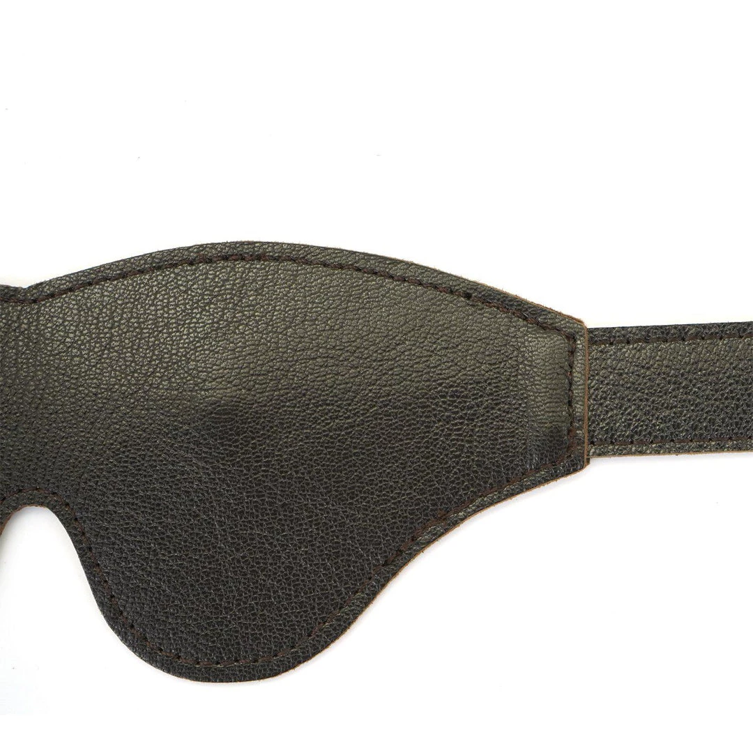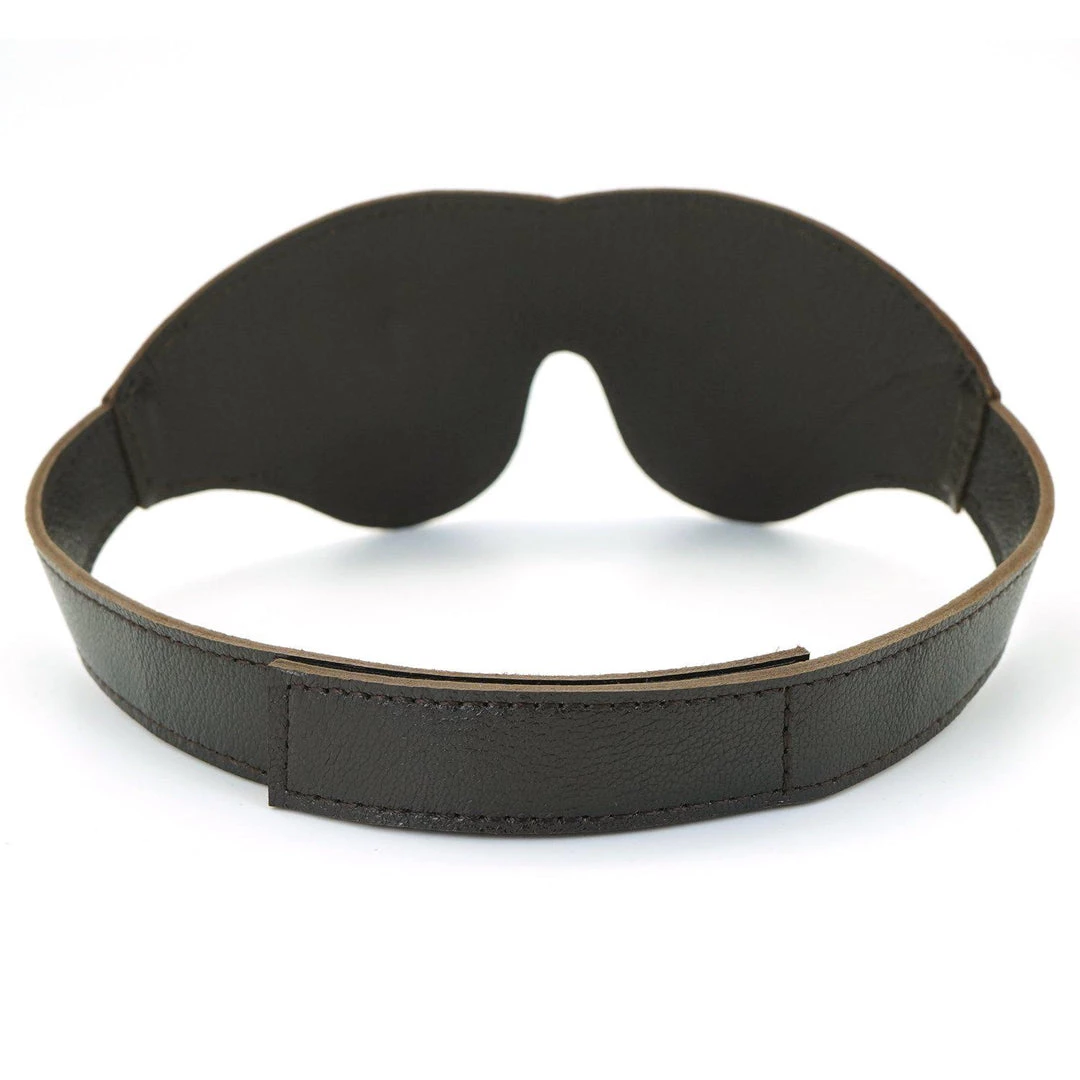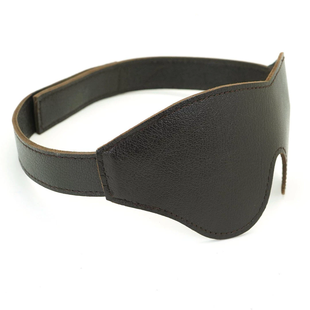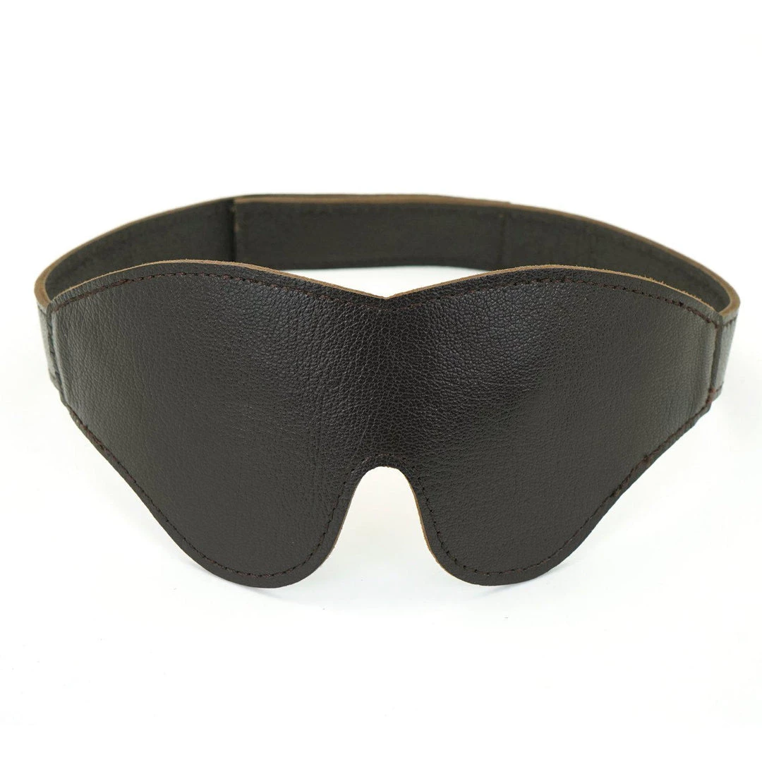 Spartacus Blindfold in Brown Leather with a fabric lining and a Velcro Closure. One size fits most. Made in the USA.