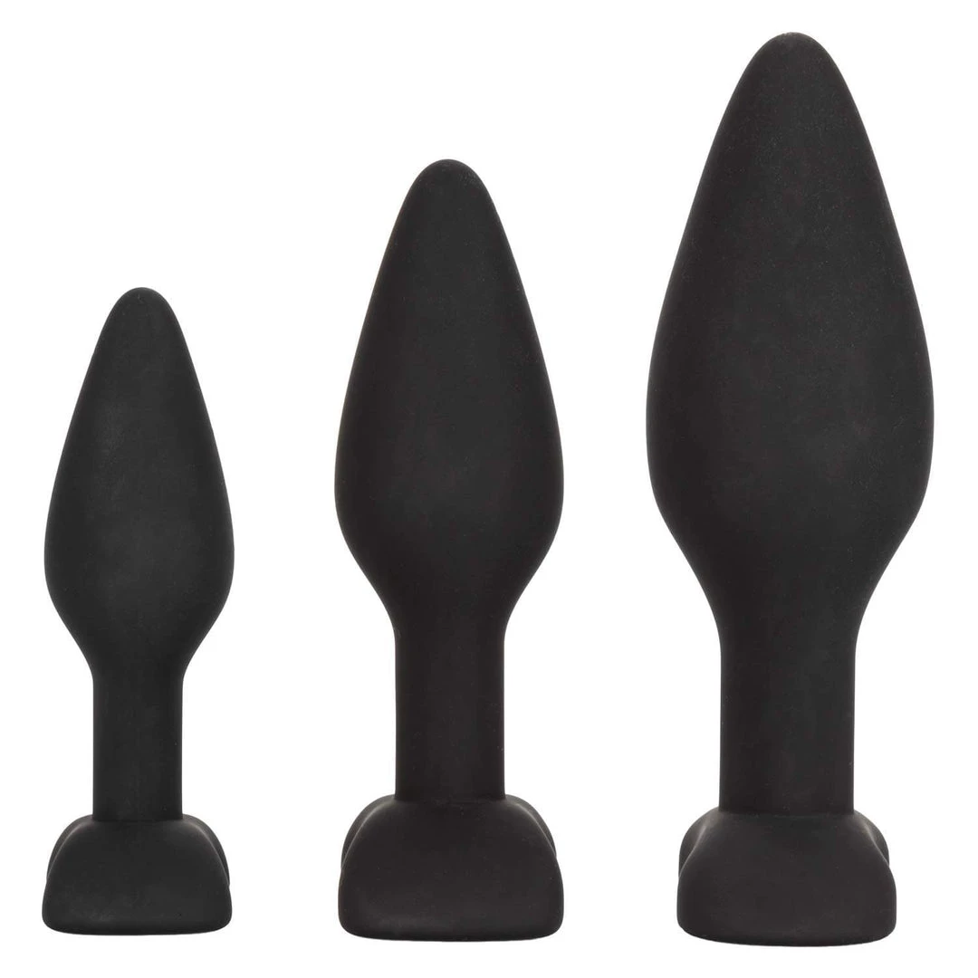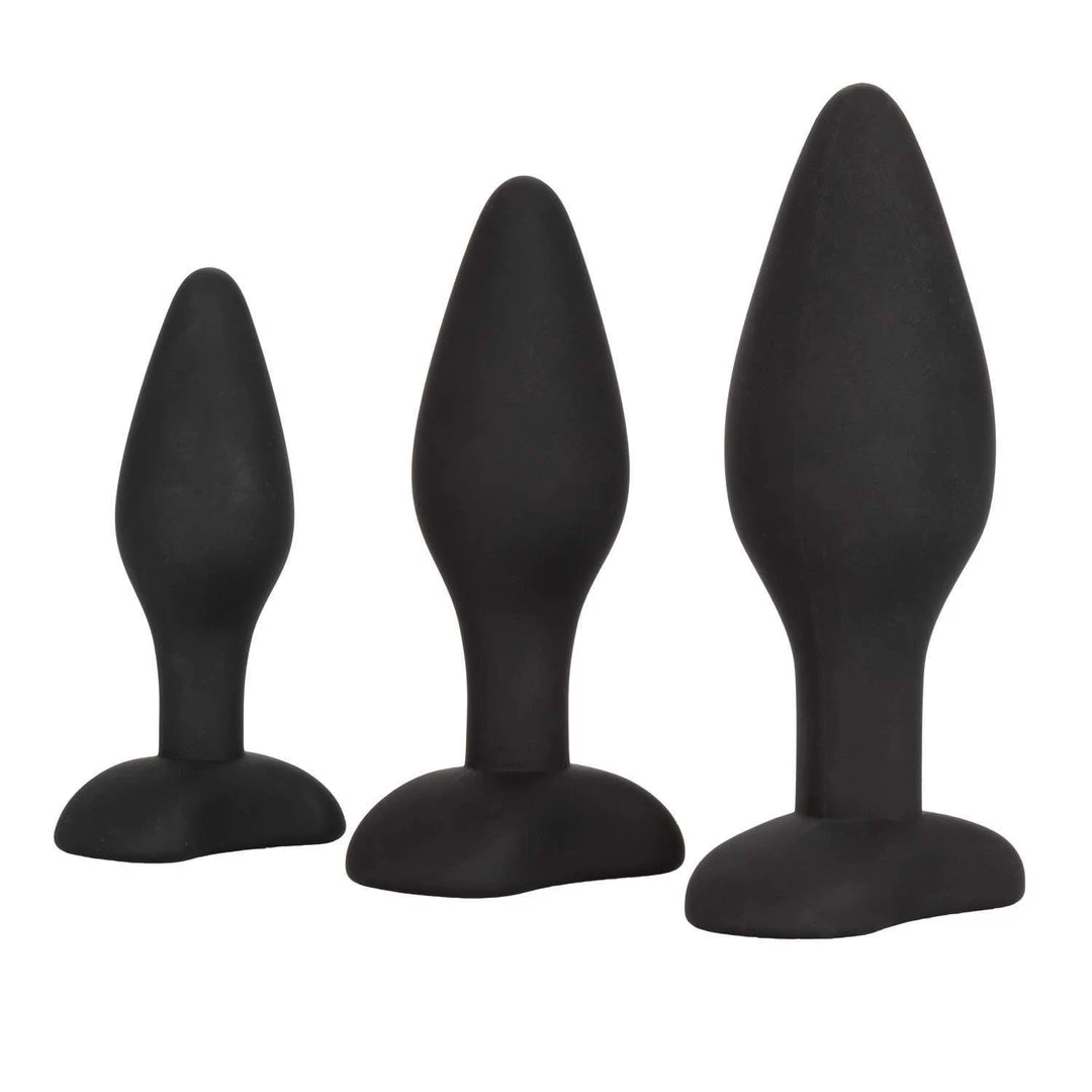 As with any anal play, a thorough personal clean/douche, and plenty of water based only lubricant are highly recommended with this silicone butt plug kit. Take your solo pleasure to the next level and step up in size when you feel comfortable, or if you’ve reached your happy place, enjoy the variety in sizing with your partner.