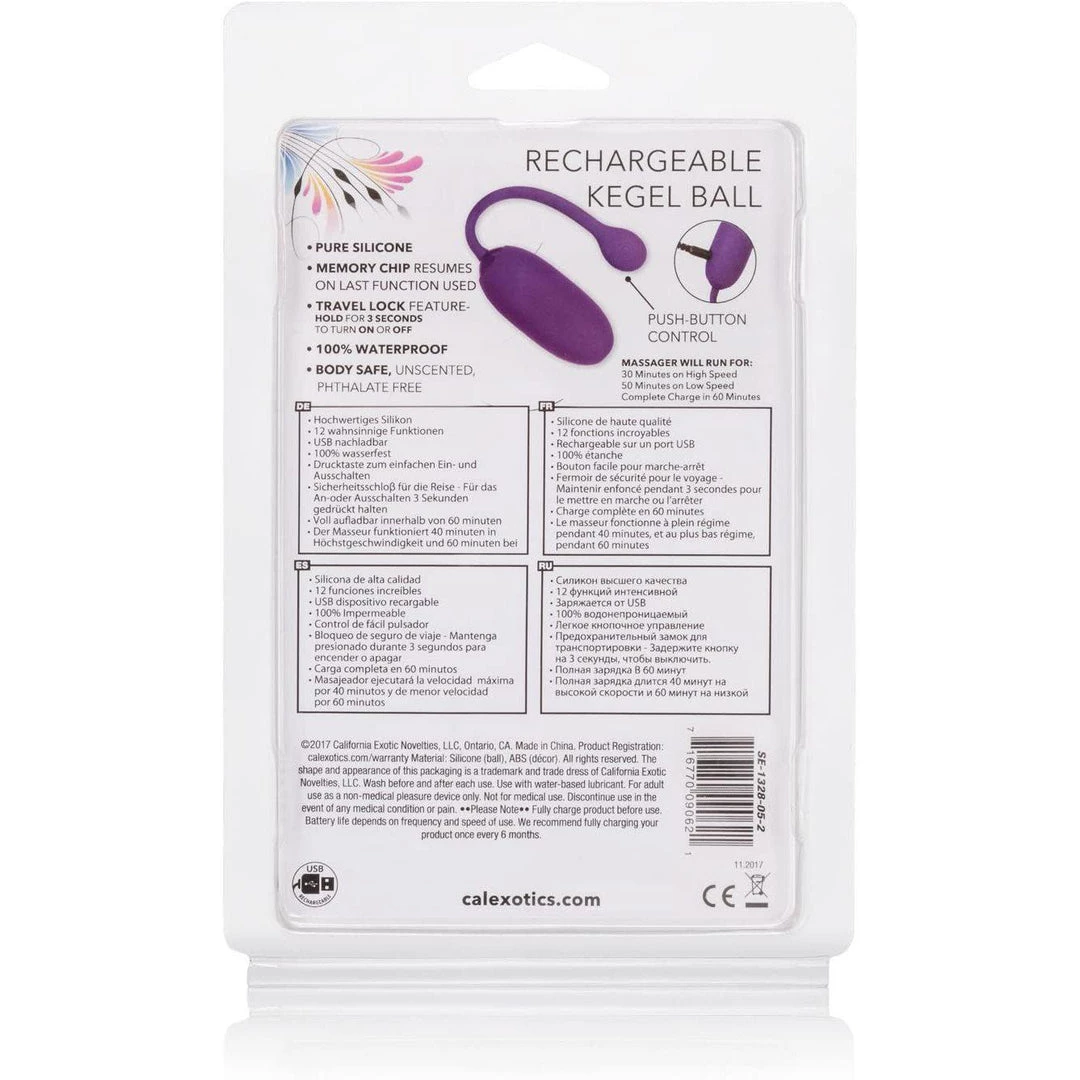 We present the Rechargeable Kegel Ball among the various toys California Exotic Novelties brings us. It is an insertable vibrating kegel ball encased in phthalate-free, plush silicone that is unscented and body-safe. The vibe has 12 powerful vibrations controlled with a single push button on the tip of the retrieval cord of the vibe.