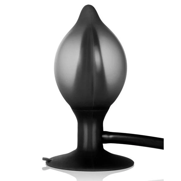 - Classic tapered plug style with suction base, which is soft to insert and can be inflated/deflated manually for instant relief, or timed with personal climax