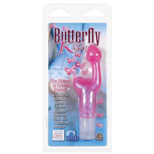 An unusual looking design at first, the Butterfly Kiss G-spot and clit stimulating vibrator is intended to deliver ascending internal vibrations whilst stimulating the clitoris. It does so with the same sensation and unique, butterfly component outside at the same time, which delivers concentrated action on an often neglected area. This is a waterproof toy as well, making complete self-service possible, with wet or dry an additional option to the already impressive array of features the Butterfly Kiss vibrator has on offer.