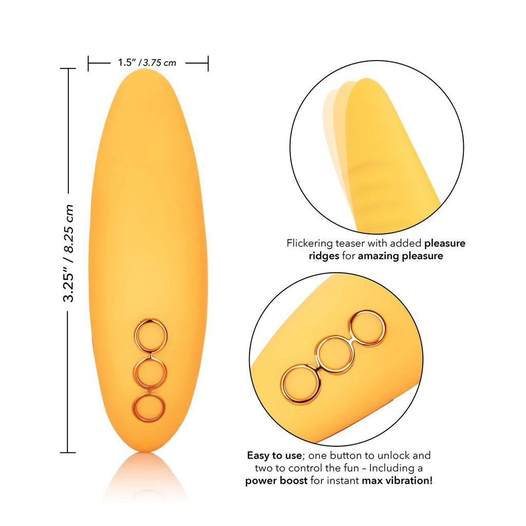 Indulge in wave after wave of pleasure as this massager flickers against your most sensual sweet spots. The 10 intense vibration functions, plush silicone and flickering tip will make you feel like the star of the show! This mini massager fits close to your curves and enjoy full control over the indulgent vibrations and G-spot stimulating design.