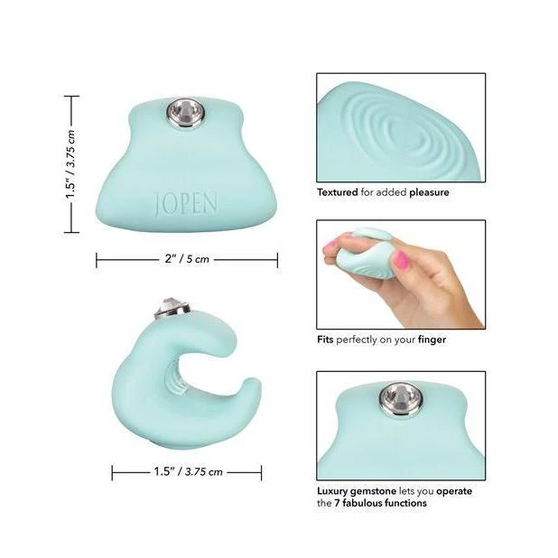 The luxuriant and ergonomic, form-fitting finger ring vibrator from Jopen is a high end personal indulgence that offers seven intense vibration and intensity settings in a silken, delicately ridged premium silicone ring that easily fits over your own or your playmate’s finger. The stunning pastel finish is highlighted by an inlaid crystal, with USB recharge offering a full 30 minutes of waterproof run time from a single charge.
