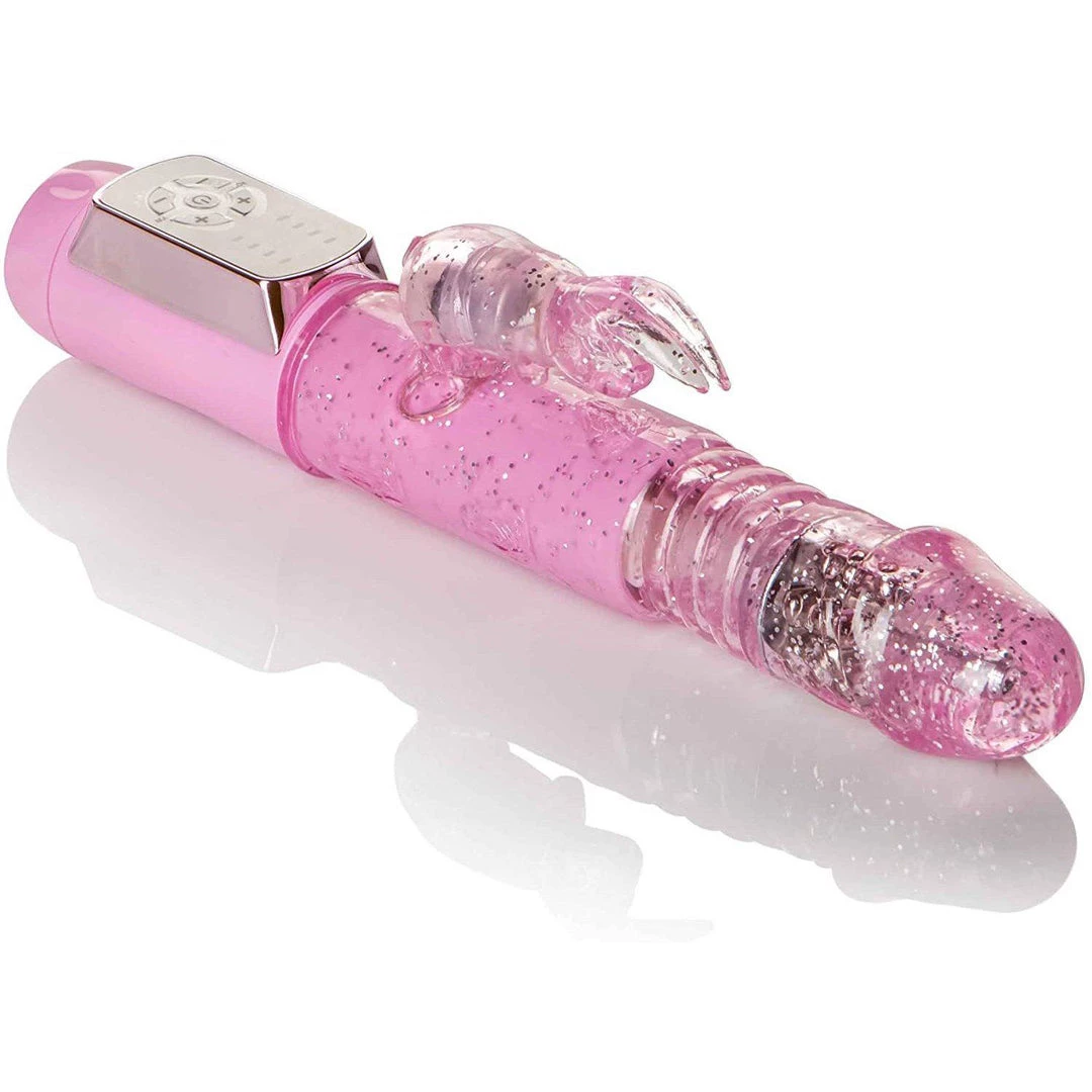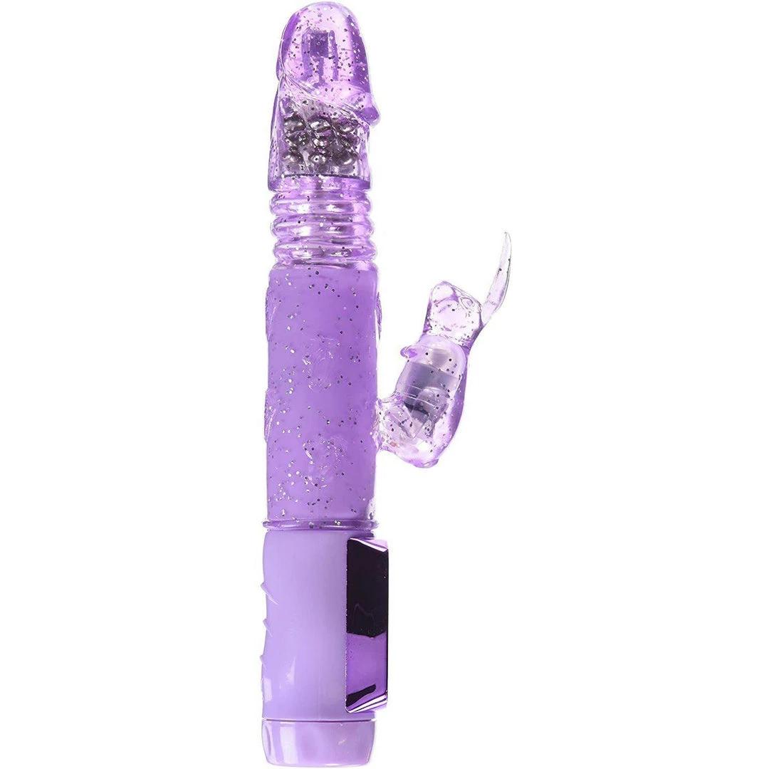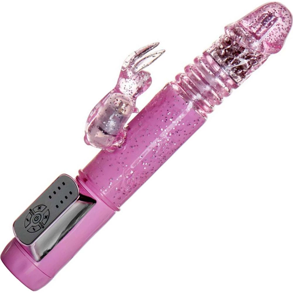 - Glittery rabbit vibrator with a realistic shaft that thrusts up and down just like a lover, with 10 vibration, pulsation and escalation functions