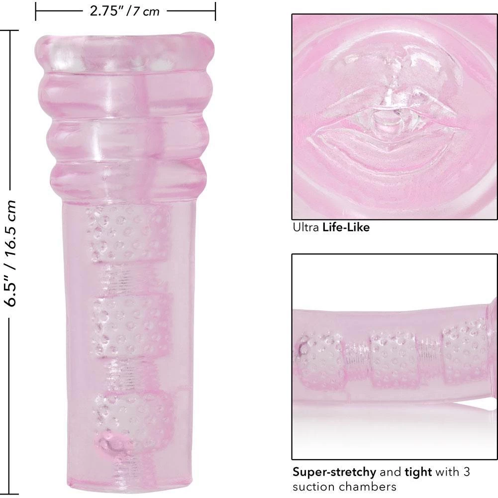 This delightful stroker, made of ultra-soft, super stretchy, translucent TPR, features three tight vacuum chambers for powerful suction within a ribbed inner cavity for increased stimulation. The TPR material is both body-safe and phthalate free, as well as very durable and pliable to fit the largest sized men up to 10 inches!