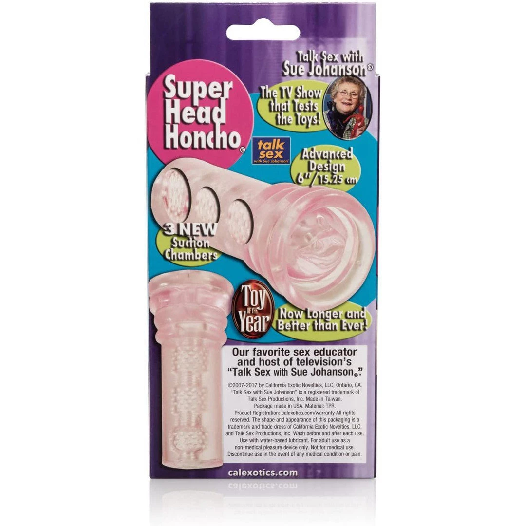 Always clean before and after use by turning the toy inside-out and washing with warm water and soap, or toy cleaner. Once dry, store the Super Head Honcho separately from other toys, in a sealed plastic bag, or in the original packaging to keep the integrity of the toy intact.