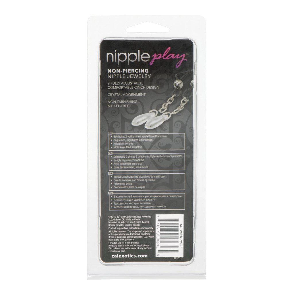 The smooth clear crystal pendants tangle seductively from the jewelry chain and add a delightful tingle sensation. Use the decorative jewelry for seduction or fetish play – lovers of extended nipple play will enjoy the additional visual stimulation that the sparkling crystal danglers provide. Surprise your lover by slipping on the nipple jewelry and issuing an invitation to play, and to boost the erotic sensations apply arousal gel directly to the nipple, for a long lasting erect nipple effect. Beautifully designed to look incredible on you or a lover, these clips clean easily with mild soap and warm water after sweaty sessions in sex and are sure to excite, entice, and inspire passion in the bedroom.