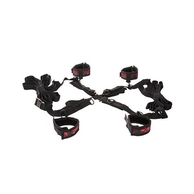 The strong straps are fully adjustable to fit every size bed. The universal clasps and rings feature a swivel design that makes changing positions in the heat of the moment a breeze. An incredibly sexy foray into the world of roleplaying and promises a unique and naughty evening of play for both dominant and submissive. Equally perfect for beginners and experienced players, this set is a must-have for all playful and adventurous couples.