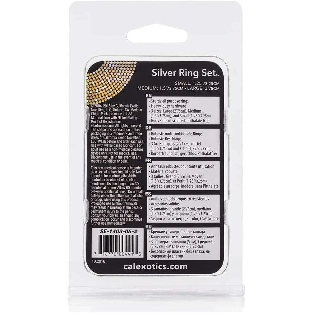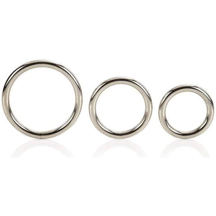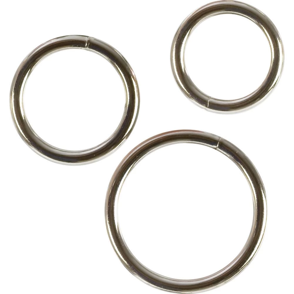 This metal cock ring set lets you use a variety of sized rings, ranging from 1.25 inches, 1.5 inches, and up to 2 inches internal diameter. The largest ring can be used at the base of the erect penis to maintain a longer and harder performance. The next size down can slip over the scrotum and the smallest could be used on the tip or glans of the erect penis.