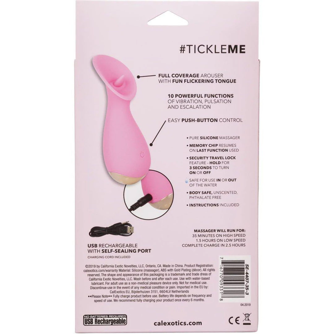 An inner USB rechargeable battery powers the toy. It takes about 2.5 hours to a full charge, allowing you a max playtime of about 90 minutes. The #TickleMe Silicone Clitoral Vibe is waterproof, and you can even play in the shower or bath. Keeping it clean is effortless, as the silicone is hypoallergenic, and you can wash it with warm soapy water or toy cleaner.