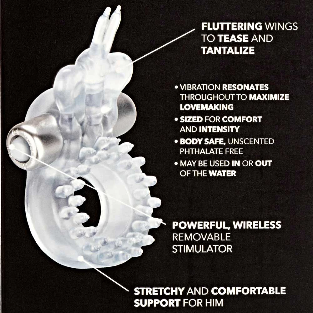 - Super stretch, highly detailed and powerful butterfly stimulator C-ring with removable micro vibrating bullet