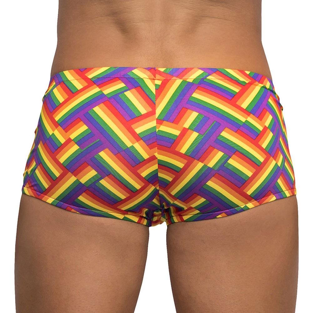 Characterized by a low-rise waist, the Pride Fest Mini Short also features a contoured pouch for added comfort and emphasis on your bulge. The multi-colored rainbow-inspired print in a herringbone pattern is instantly recognizable and worth flaunting.