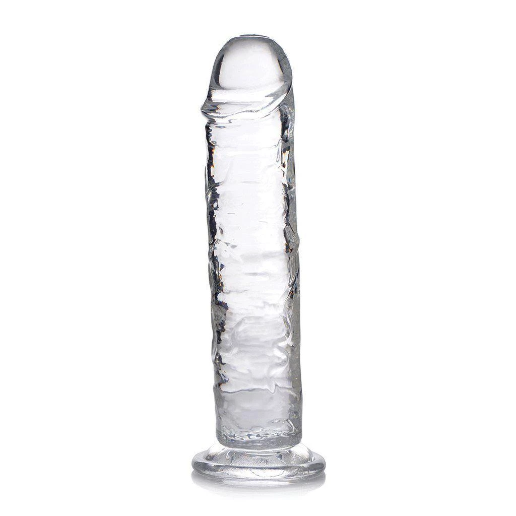 Crystal clear, ultra-realistic, and exceptionally low maintenance for no-nonsense fun. This slim transparent shaft provides a satisfying meaty density from tip to base, featuring realistic hand crafted details for your eyes and your insides to enjoy.