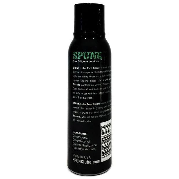SPUNK Lube Pure Silicone Ingredients: Dimethicone, Dimethiconol, Cylopentasiloxane, Cyclohexasiloxane.