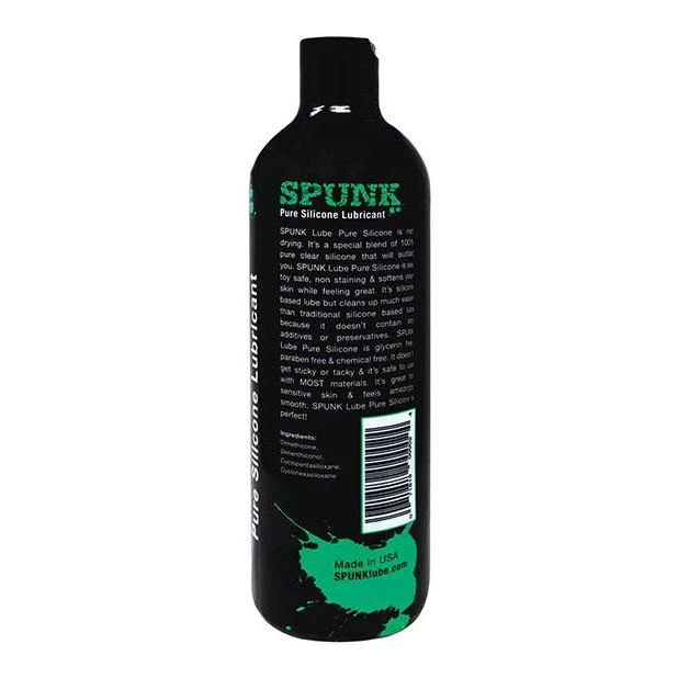 SPUNK Lube Pure Silicone is non drying during use. It’s a special blend of 100% pure clear silicone that will outlast you. It’s free from glycerin, parabens, propylene glycol & other ingredients. SPUNK Lube Pure Silicone is sex toy safe, non staining & softens your skin. It’s silicone based but cleans up much easier than traditional silicone based lube because it doesn’t contain any additives or preservatives.