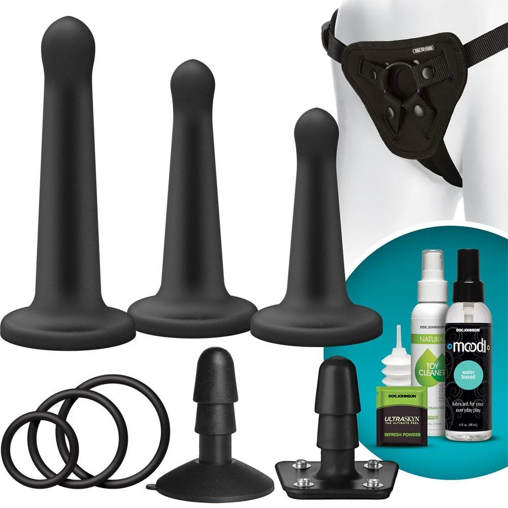 - Set contains everything you need to get started with Vac-U-Lock™ harness play, including the harness, attachments, accessories, and care products