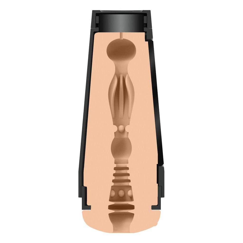 The Main Squeeze ULTRASKYN stroker is created by Doc Johnson, a famous adult toy manufacturer. The Main Ultraskyn Stroker has a discreet design with protective caps at the ends. The inner sleeve is made from UltraSKYN/TPE, while the outer case is hard ABS plastic. The cap at the top hides the entrance that looks like realistic pussy lips molded after well-known porn stars, while the bottom cap allows the user to control the suction and enables easy cleaning.