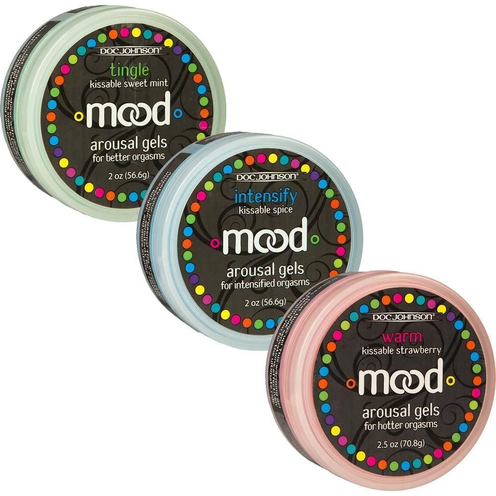 Finally, an arousal gel for every mood! Doc Johnson’s new MOOD Arousal Gels come in a 3-pack of 2 oz. containers and are absolutely perfect diverse and amazing foreplay sessions. “Warm” brings the heat, “Tingle” creates a stimulating buzz, and “Intensify” enhances every sensation. Each container is even packed with its own tasty flavor; includes “Warm” Mint, “Tingle” Strawberry, and “Intensify” Spice. All flavors are delectably lickable. Proudly made in America. 2 oz. containers of each.