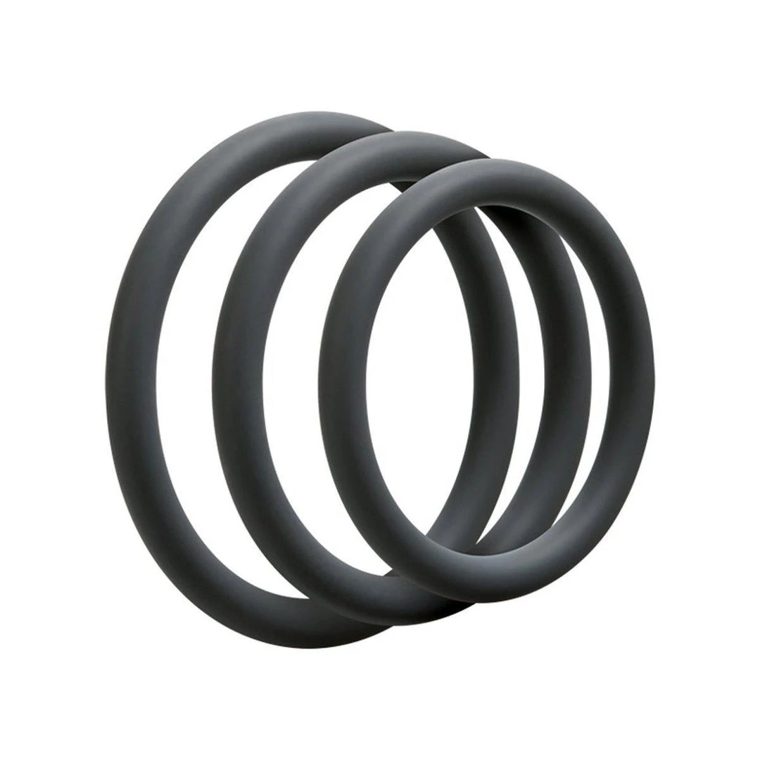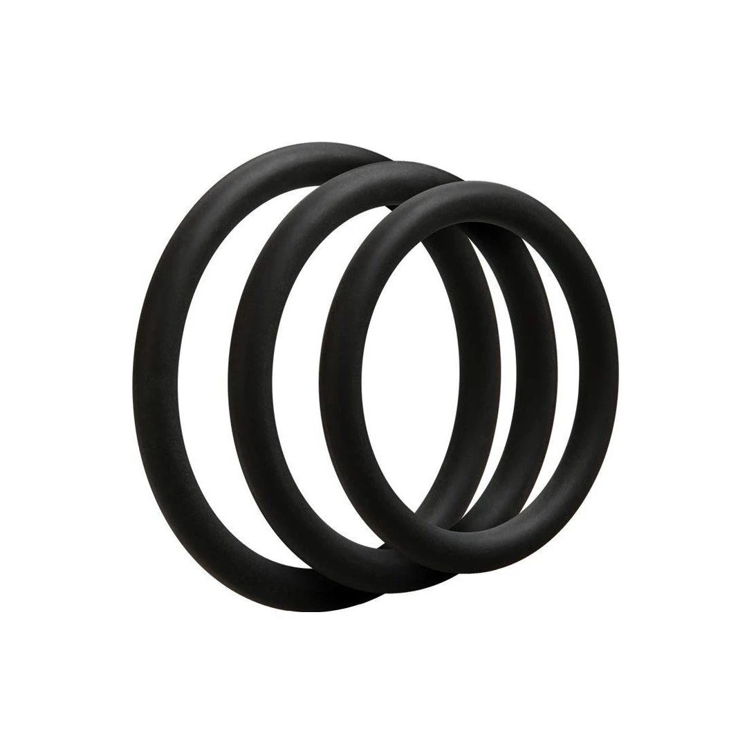 - Set of 3, premium quality and durable, super-stretchy silicone cock rings, from 1.25 to 1.65 inches in diameter