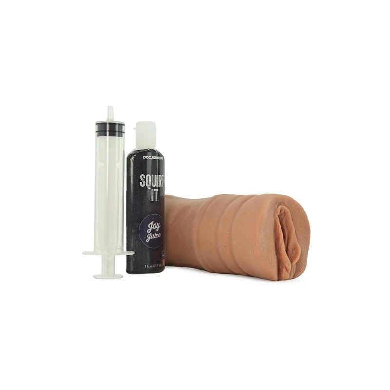 Your wettest and wildest fantasies are now in the palm of your hand with this ultra-lifelike squirting masturbator! Made of the incredibly lifelike ULTRASKYN™ material, the Squirt It masturbator squirts on command thanks to an easy-to-fill syringe and a 1 fl. oz. bottle of realistic Joy Juice.