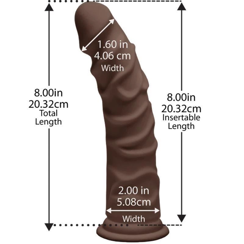 The second option is eight inches of all the same fantastic goodness, but without the balls. It features the same fat, supple head and extra-veiny, slightly-curved shaft for your ultimate pleasure in prostate and G-Spot-stimulating penetration, but with an extra inch and a half of insertable length for added fullness.