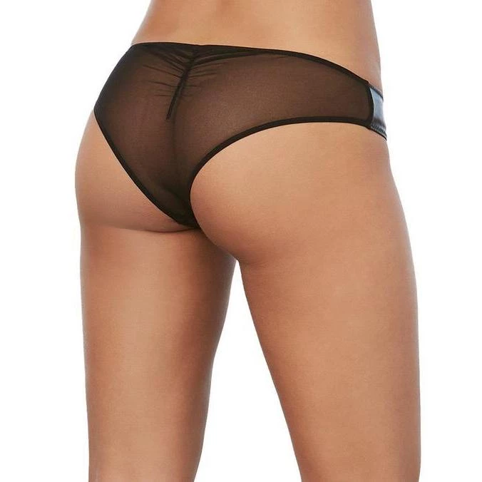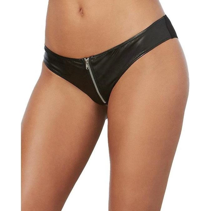 Dreamgirl International Lingerie Faux Leather Look Stretch Knit Cheeky Panty With Zipper