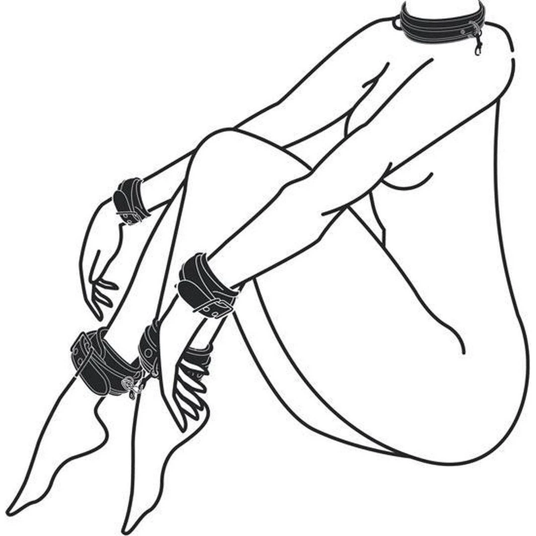 Prepare for a world of delightful, devious fun! This restraint set is internally lined with foam, making it incredibly comfortable to wear for long periods of time. So, no matter how punishing your play, this restraint will keep them comfortably and securely in place for the duration. Boasting a beautiful BDSM look and feel, the cuffs and collar are all connected with a heavy-duty chain, while the ergonomic snap clip fasteners mean that they can each be worn independently of one another if desired. Featuring additional D-rings, you can even attach the collar to other leads and restraints for completely customized gratification. Pair this versatile restraint up with your favorite ankle restraints, nipple clamps, a bondage gag or other BDSM accessories to set the ultimate scene!