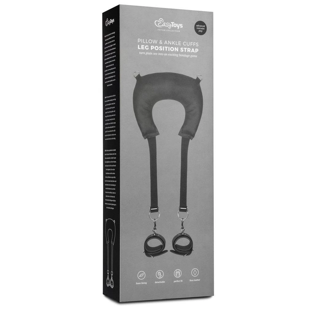 The Easy Toys Pillow and Ankle Cuffs Leg Position Strap is precisely what the name suggests – a pillow and ankle strap/cuffs contraption that keeps your legs apart. The comfortable pillow and the cuffs are made from faux leather and lined with foam for comfortable use and to prevent scratching and chafing of the skin. The cuffs are adjustable from 13 to 30 cm, or 5” to 11.8”. The straps are made from woven nylon for strength and durability and are adjustable from 12 to 150 cm or 4.7” to 59”.