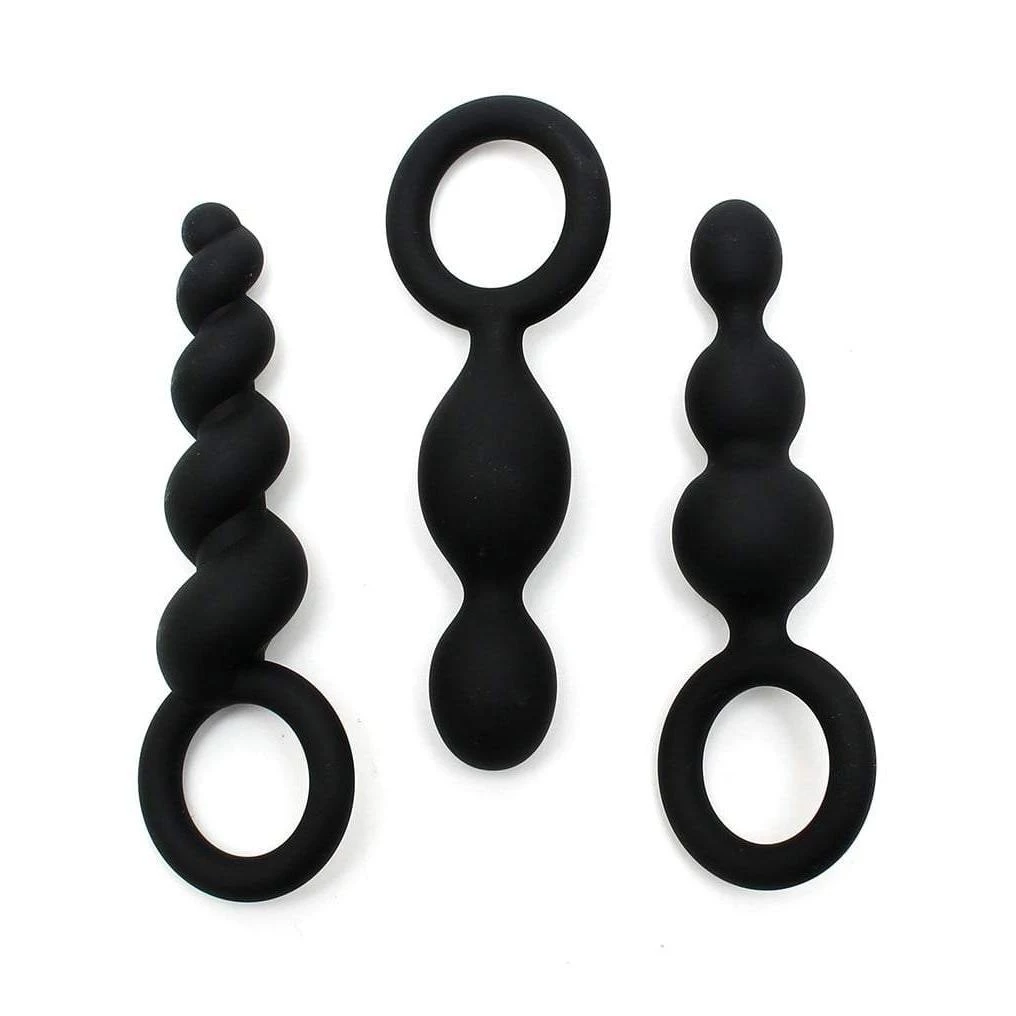- Set of 3 soft silicone plugs/teasers with varying size and designs, all for maximum pleasure and practical functionality