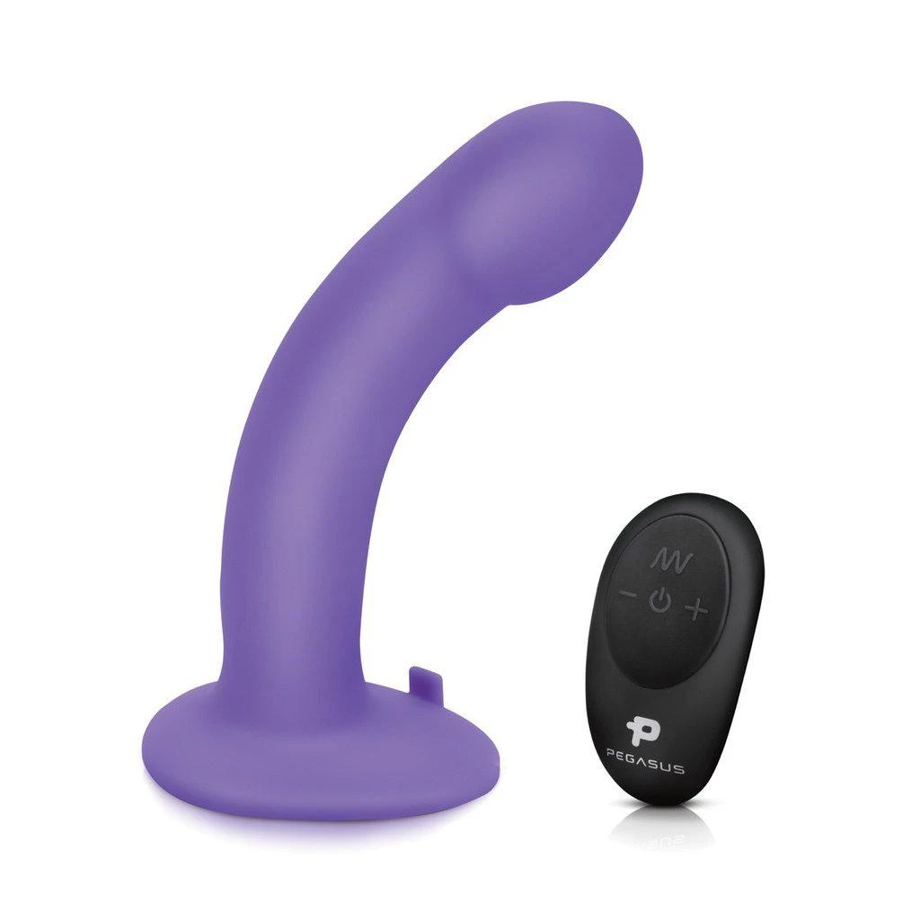 Brought by Electric Eel, the Pegasus 6” vibrating pegging set is a fascinating and versatile toy. It is made from body-safe silicone and comes in a deep purple shade with black remote control. The pegging dildo has a slight curve, enabling better insertion and more targeted stimulation. The internal motor has 15 vibration patterns and six vibration levels, and the vibrations are controlled via the wireless remote control.