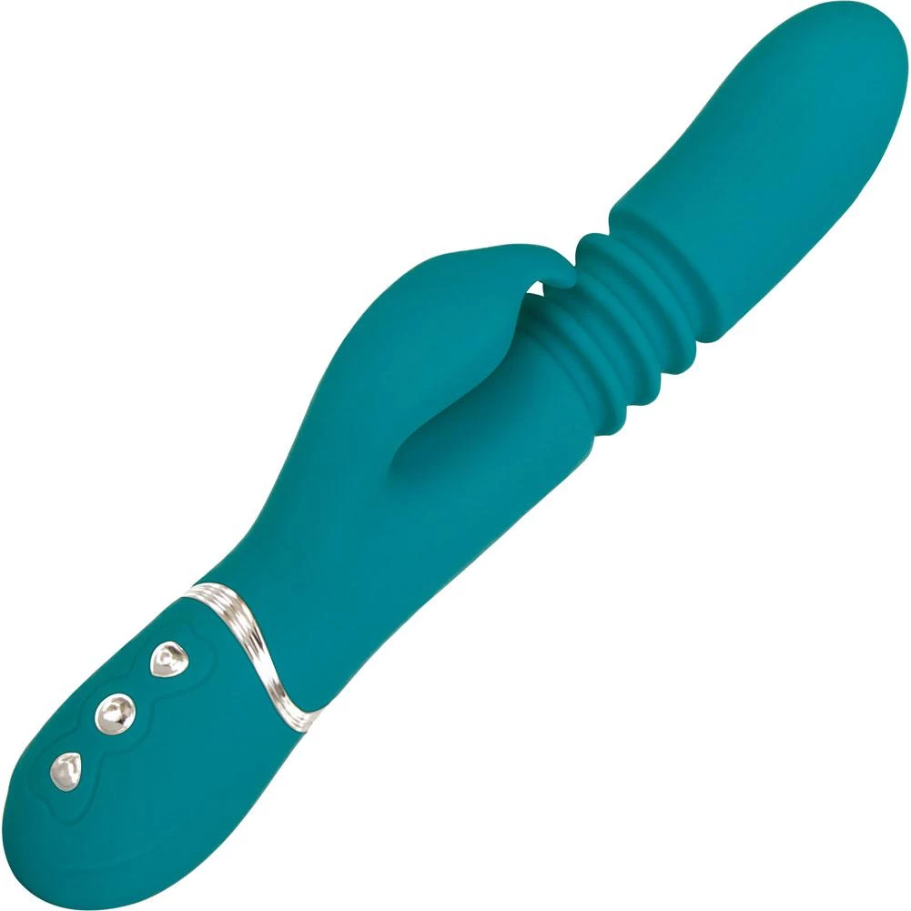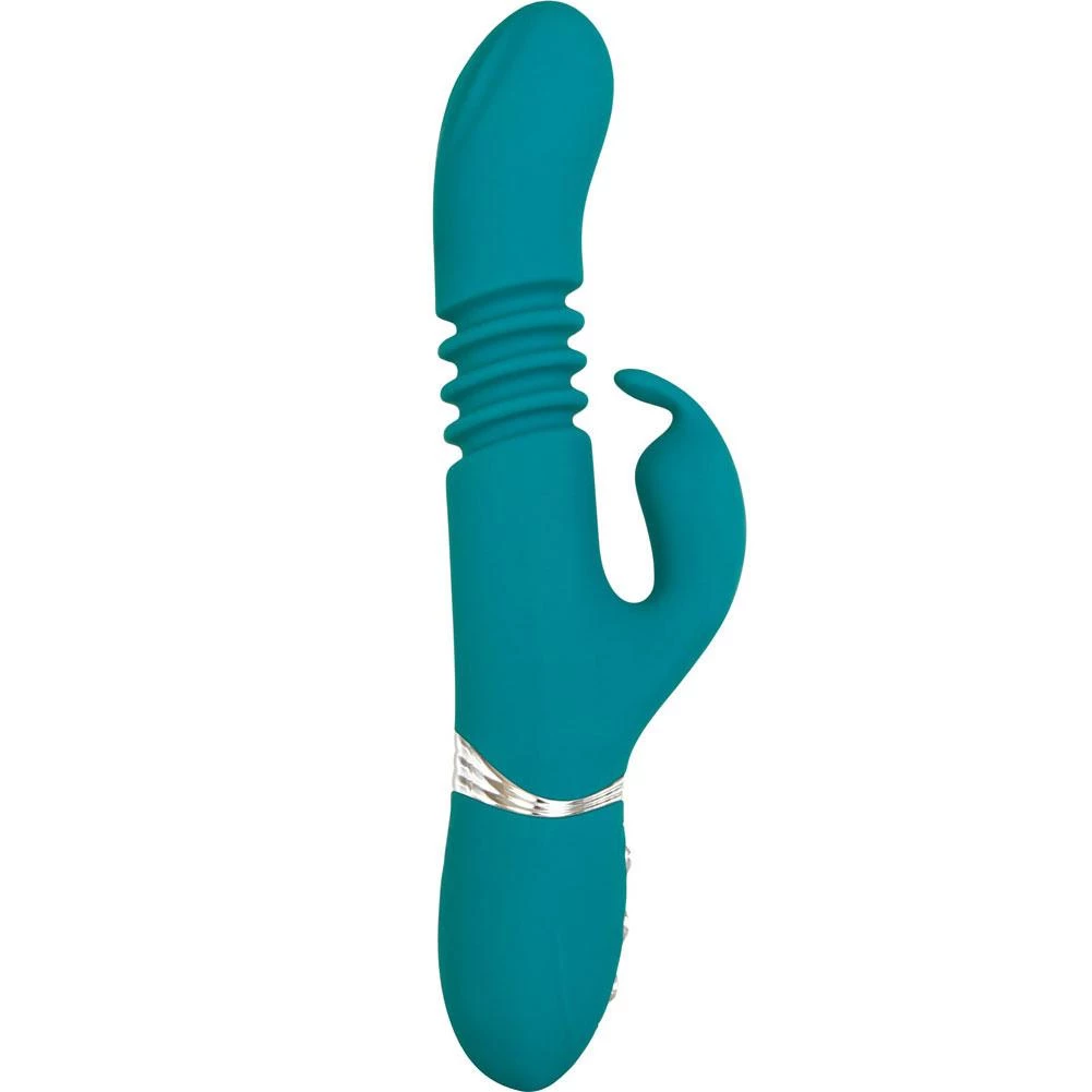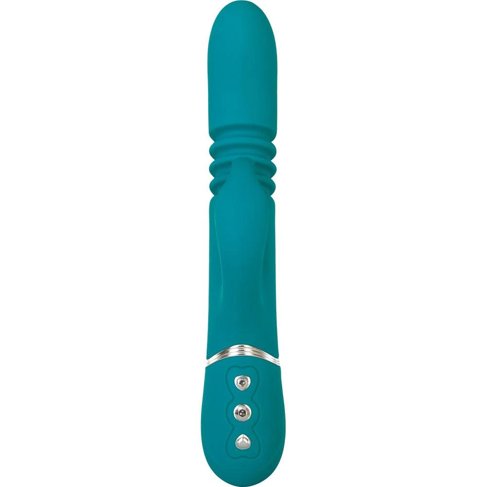 Let this rechargeable bunny’s powerful thrusts and vibrations take you over the edge! Its luxurious silicone shaft delivers 10 functions of thrust deep inside you – to satisfy your G-spot just like the real thing. Dual vibrating motors in the tip of the shaft and the clitoral stimulator buzz your hot spots with 10 functions of pulse-racing pleasure. Independent controls let you mix, match, or even isolate thrusting and vibration for the perfect orgasmic sensations.
