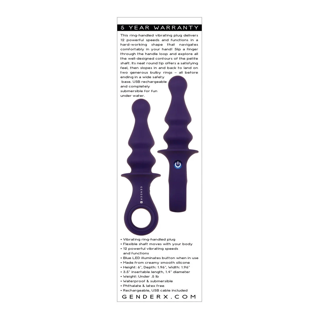 Created by Gender X, the Ping Pop vibrating plug is a user-friendly, flexible toy that lets you explore your sexuality. The shape of the plug is contoured and has a blunt, rounded tip that makes it easy to insert the plug and get a satisfying experience. The plug continues with two bulbous rings and has a broad base that continues to the ring handle.