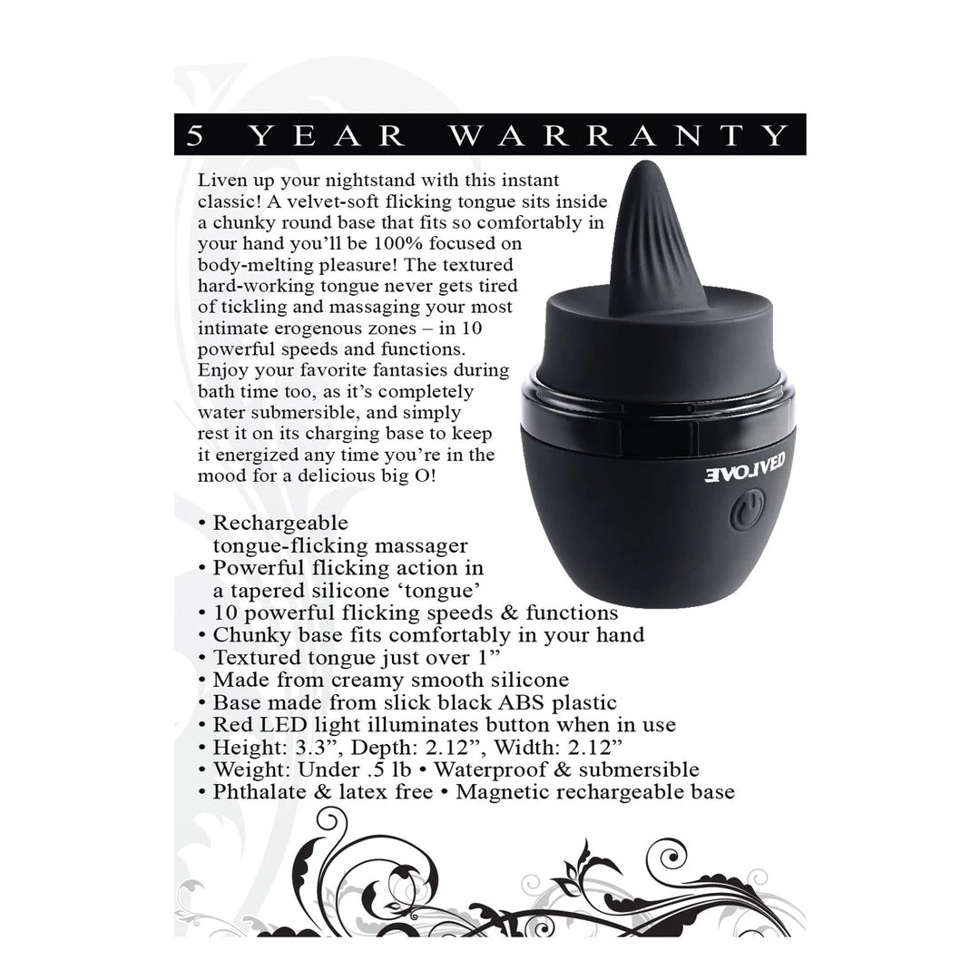 Tongue Tied is a small, comfy, and impressive adult toy, bringing a new meaning to the term cunnilingus. The toy has an oversized base with a protruding silicone tongue-like flicking massager with ten vibrating speeds and functions, from slow licks to powerful licks that can bring you over the crest. The chunky base is made from black ABS plastic, while the tongue is made from silky, slightly textured silicone that is compatible with water-based lubes.