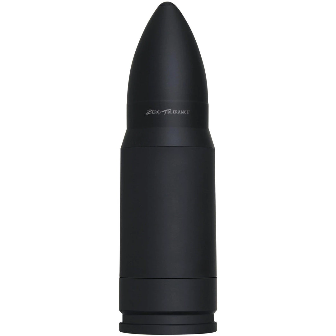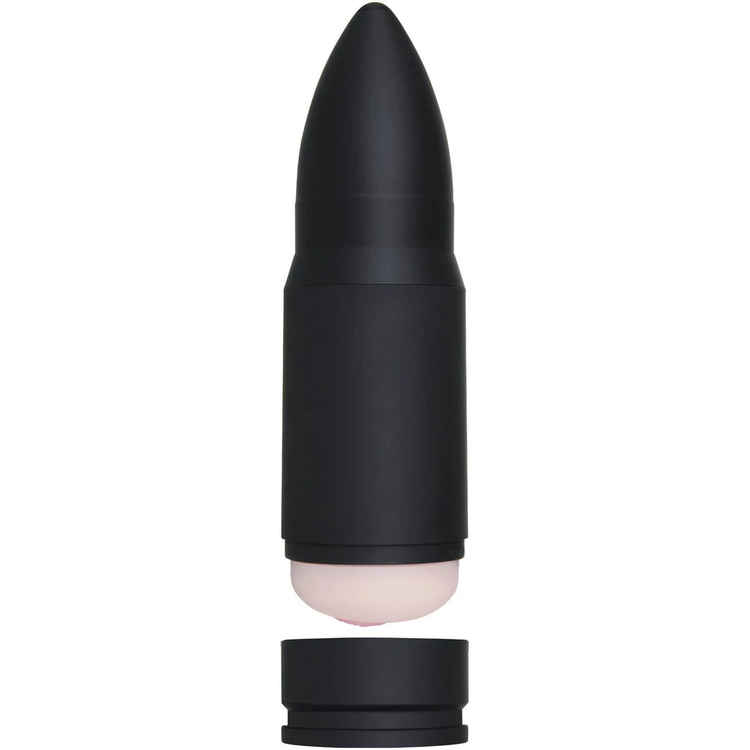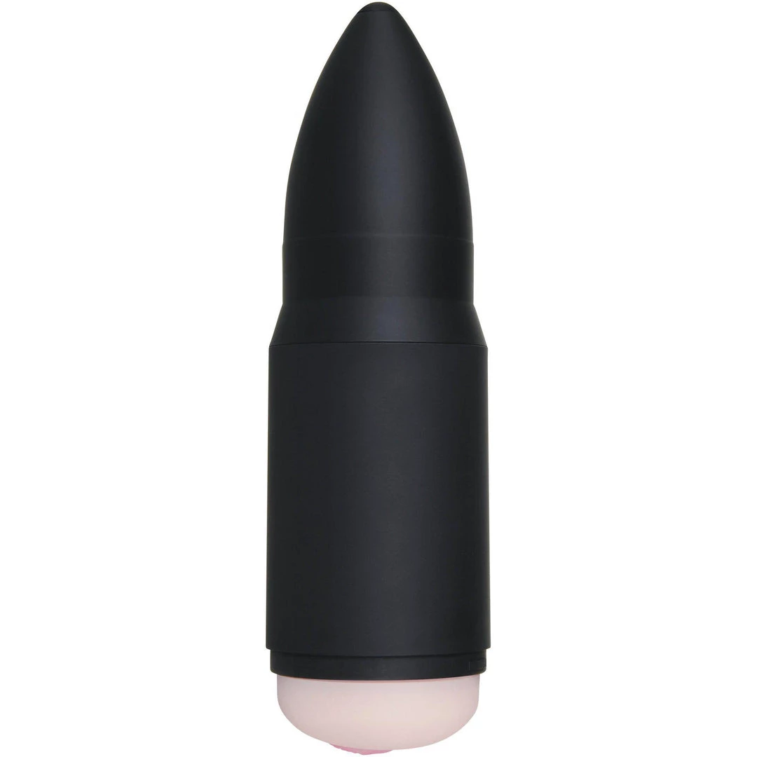 The Zero Tolerance Shell Shock Vibrating Stroker looks like an oversized bullet casing that makes it easy and discreet to store and carry with you. The bottom of the ABS bullet-shaped case opens up to reveal the opening in the shape of realistic pink pussy lips.
