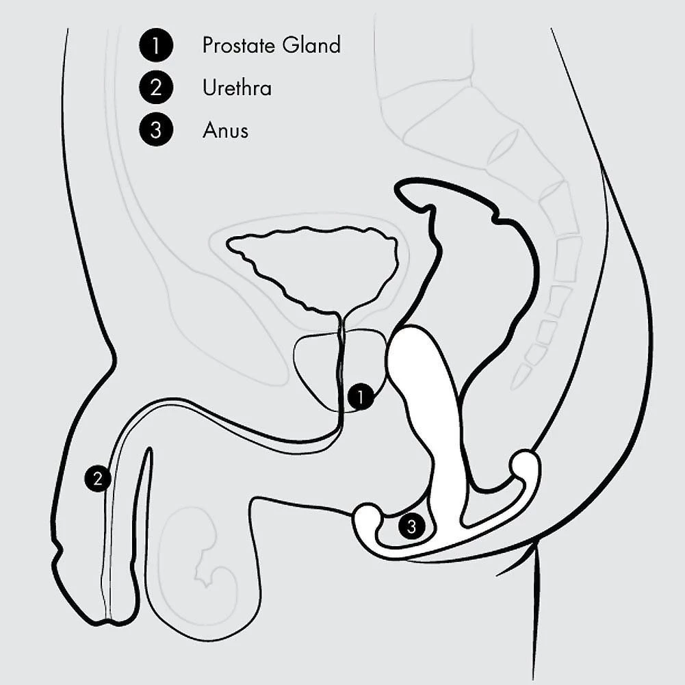 - Angled head massages the prostate or G-spot internally while the perineum tab provides external prostate stimulation