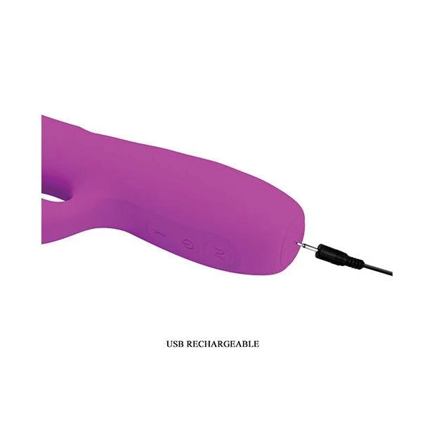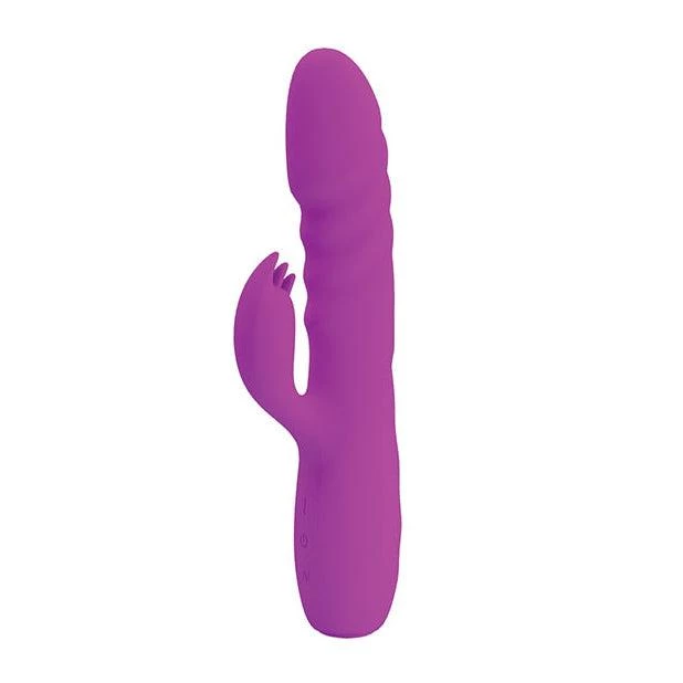 The Melanie Thrusting Rabbit Vibe from Pretty Love is exciting and fun to use. The vibe has a dual stimulation design, with a thrusting, insertable G-spot arm, and a vibrating clitoral arm. Melanie has four thrusting speeds and 12 vibration settings that can be used together or separately, depending on your mood. Three control buttons on the handle control the functions, and the toy is USB rechargeable.