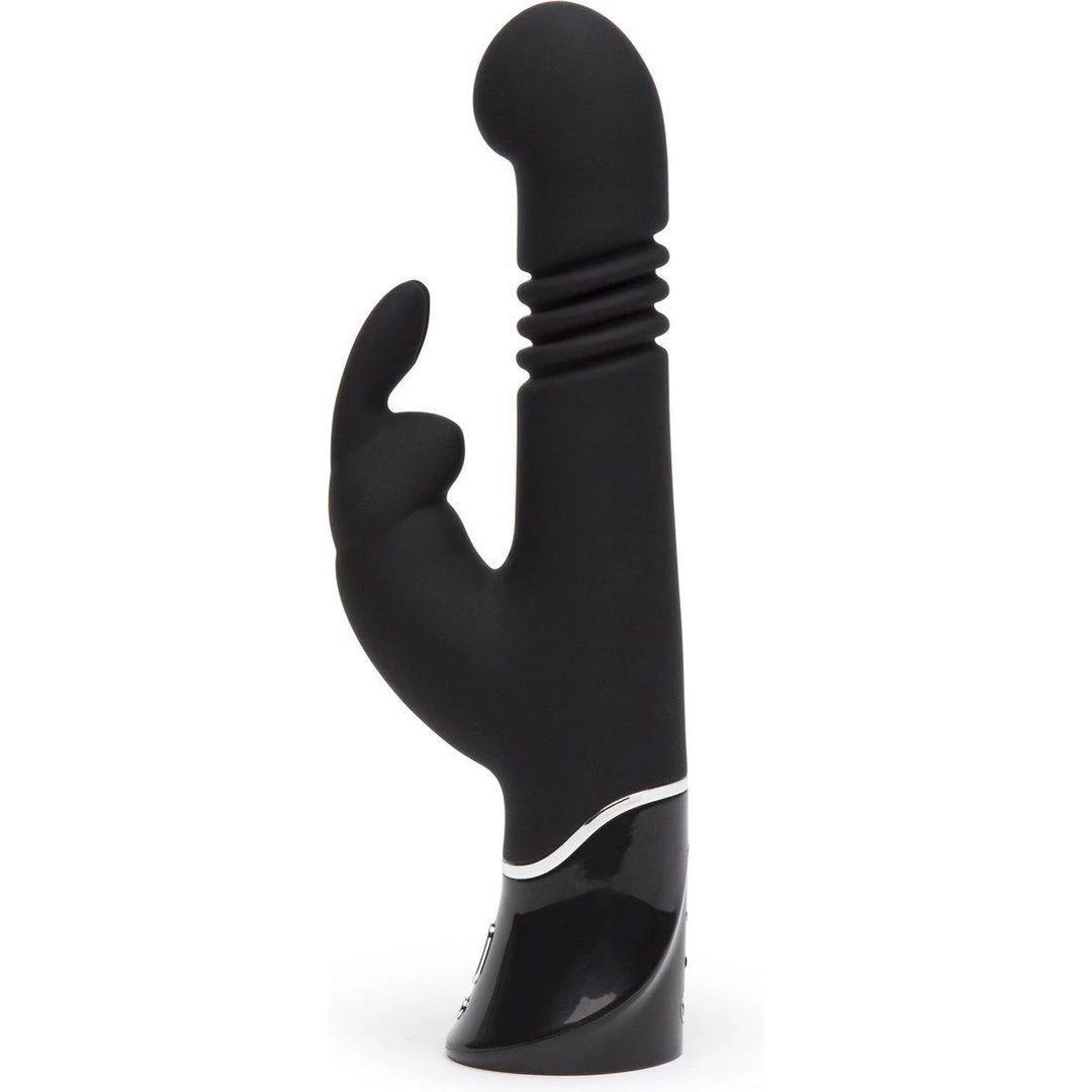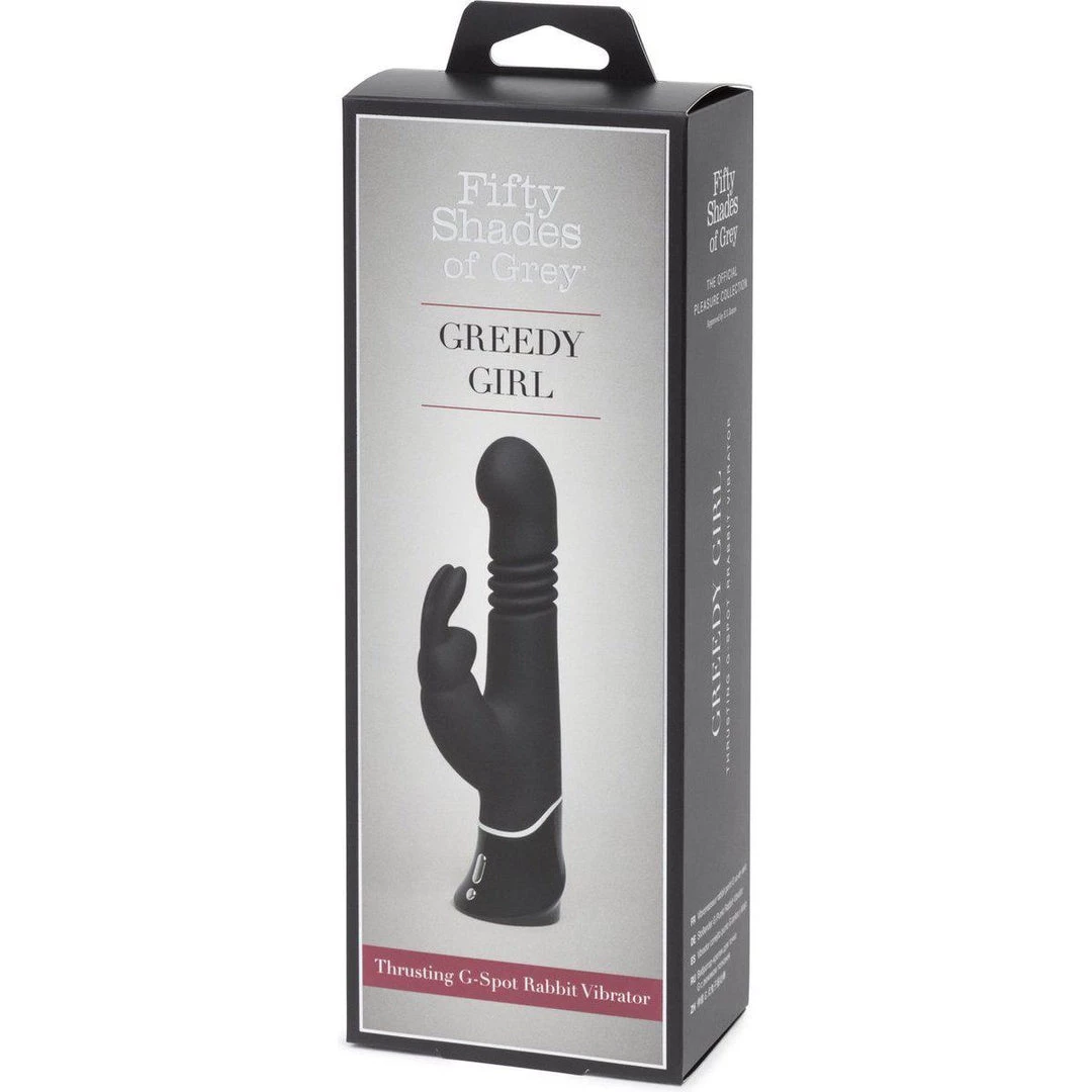 This luxury thrusting rabbit vibrator delivers intense internal and external stimulation – the thrusting head targets your internal hot spots, while the ears stimulate your clitoris. It hosts a travel lock and USB charging for pleasure wherever you are in the world! To make things even better, it hosts 3 speeds and 9 patterns of vibration in the ears and 3 thrusting speeds in the shaft for custom pleasure. Whisper-quiet for discreet play, this toy is also completely waterproof for fun in the bath or shower. Your Greedy Girl comes with a Fifty Shades of Grey storage bag, making it an ideal erotic gift for fans of the books.