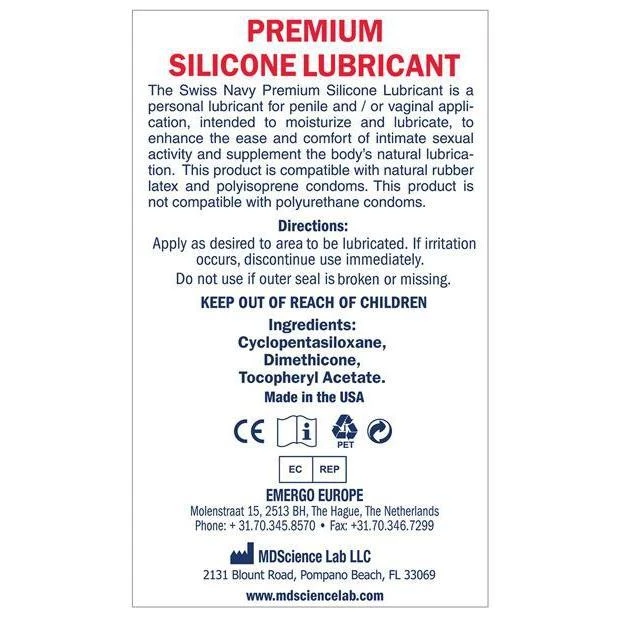 As the population ages, there is a great need to have products available that can relieve the symptoms of aging and contribute to greater personal intimacy. Silicone personal lubricant is a perfect product that can do this. Many postmenopausal women may benefit more from Swiss Navy Silicone since it is not absorbed and can help with dry, sensitive tissues. Ergonomic leak proof bottle design with locking pump.Single-hand pump for easy one-handed application Truly long lasting lubrication with a velvety feel.Silicone formula uses the highest grade on the market Hypo-allergenic/non-absorbable MADE IN THE USA 4 ounce bottle