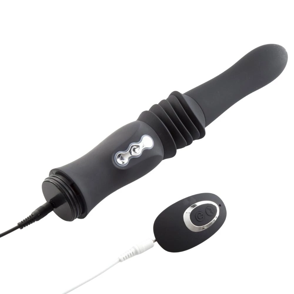 The Maia MAX is a handheld sex-machine. It is a battery-operated tool that can be operated by the included remote from up to 30 feet away or with buttons on the base. It has several functions: a vibrating option with ten levels, a pulsating option, and a thrusting action. The thrusting action allows for an extra 1.5 inches of stroke length, providing deep stimulation and intense play.