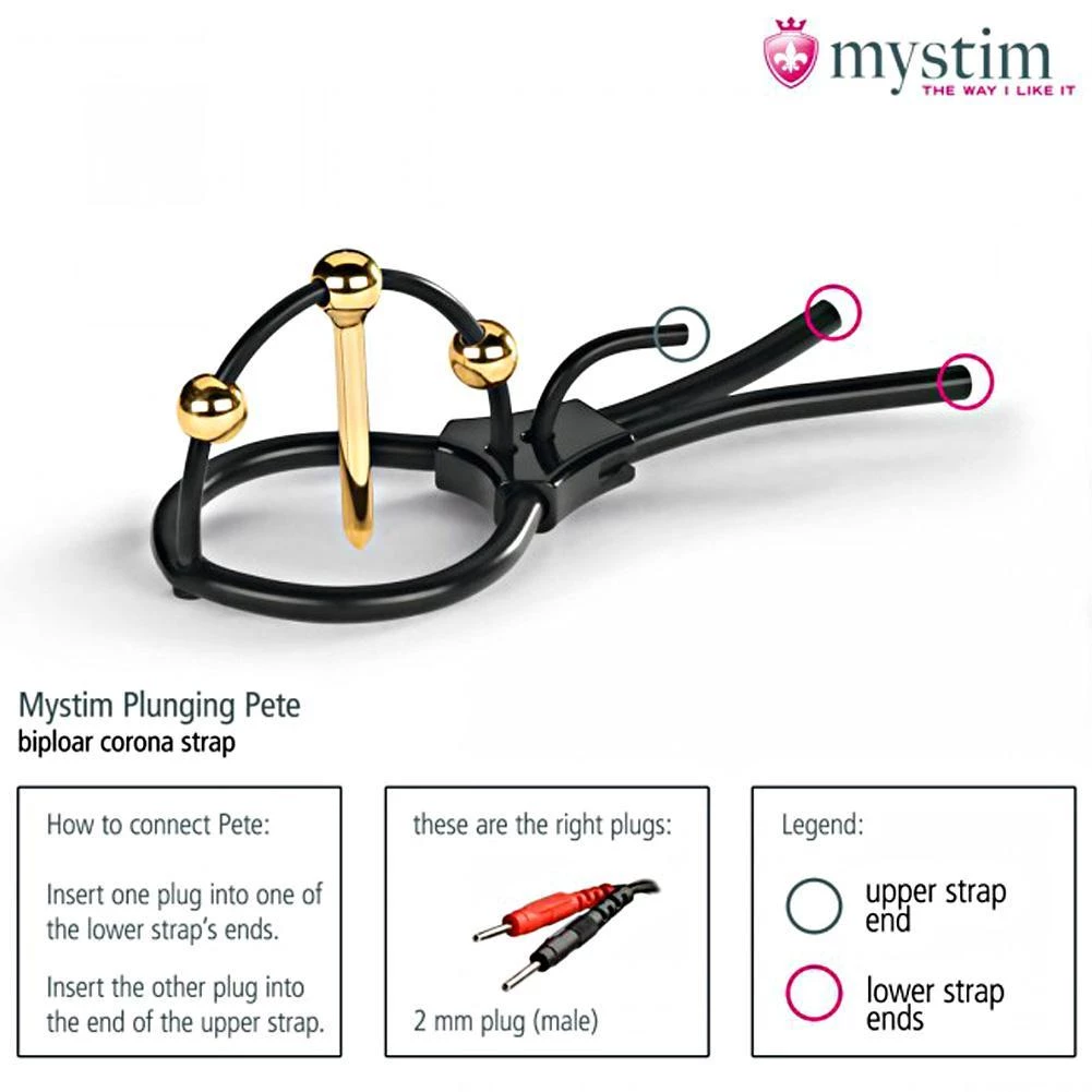 There are quite a few urethral sounds out there, but this one is specially designed for the fancy. With his 24K gold-plated urethral sound flanked by two golden balls, Plunging Pete stimulates the glans from both outside and inside. The urethral probe has a slim diameter of 0.15″ that is easily inserted even if you’ve never done that before. The short length of 1.4″ takes good care that it is the tip and nothing but the tip that gets flooded with tingly goodness. Around the balls and the probe, the tingling and pulsating is especially intense, because the gold not only makes the stimulation more even but also focuses the sensation where it touches the skin. And because every corona is a little different, you can move the golden elements along the upper strap to those points where the stimulation feels best.