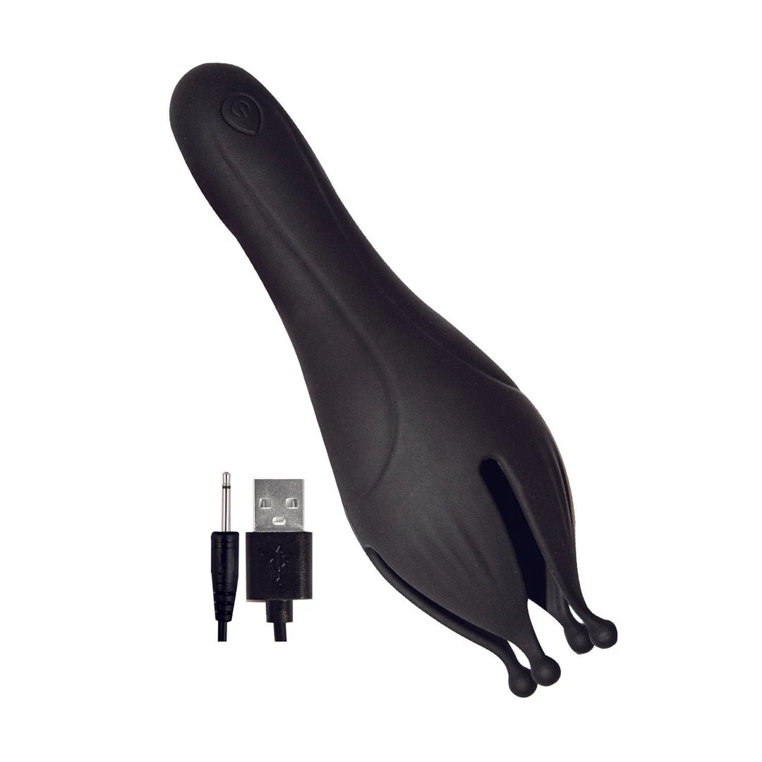 A single button on the base of the stroker controls the vibrations, and you can scroll through ten levels of vibration. The stroker is charged by the provided USB charging cable that you can plug into an AC USB adapter or a USB port on a computer. The charging port on the stroker is self-sealing, so the toy is rated as waterproof; it takes about 60 minutes to charge fully, and you get about 50 minutes of use.