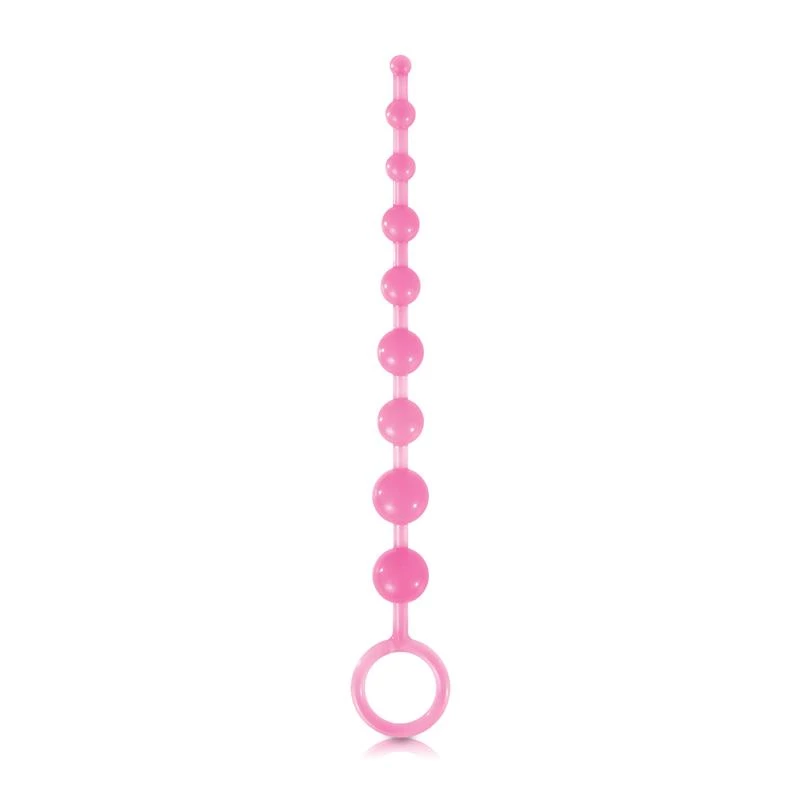 Anal beads for beginners that are just as much fun for experienced users; great for any gender or skill level. Super-flexible and non-intimidating sized beads makes for an instant thrill. And with just a little relaxation and some water based lube, you can experience terrific levels of stimulation and excitement. Take one or two beads, or insert the whole strand. Perfectly body safe, and designed for long term wear, with instant fun straight out of the pack, with a glow in the dark feature to make your nights glow with excitement!