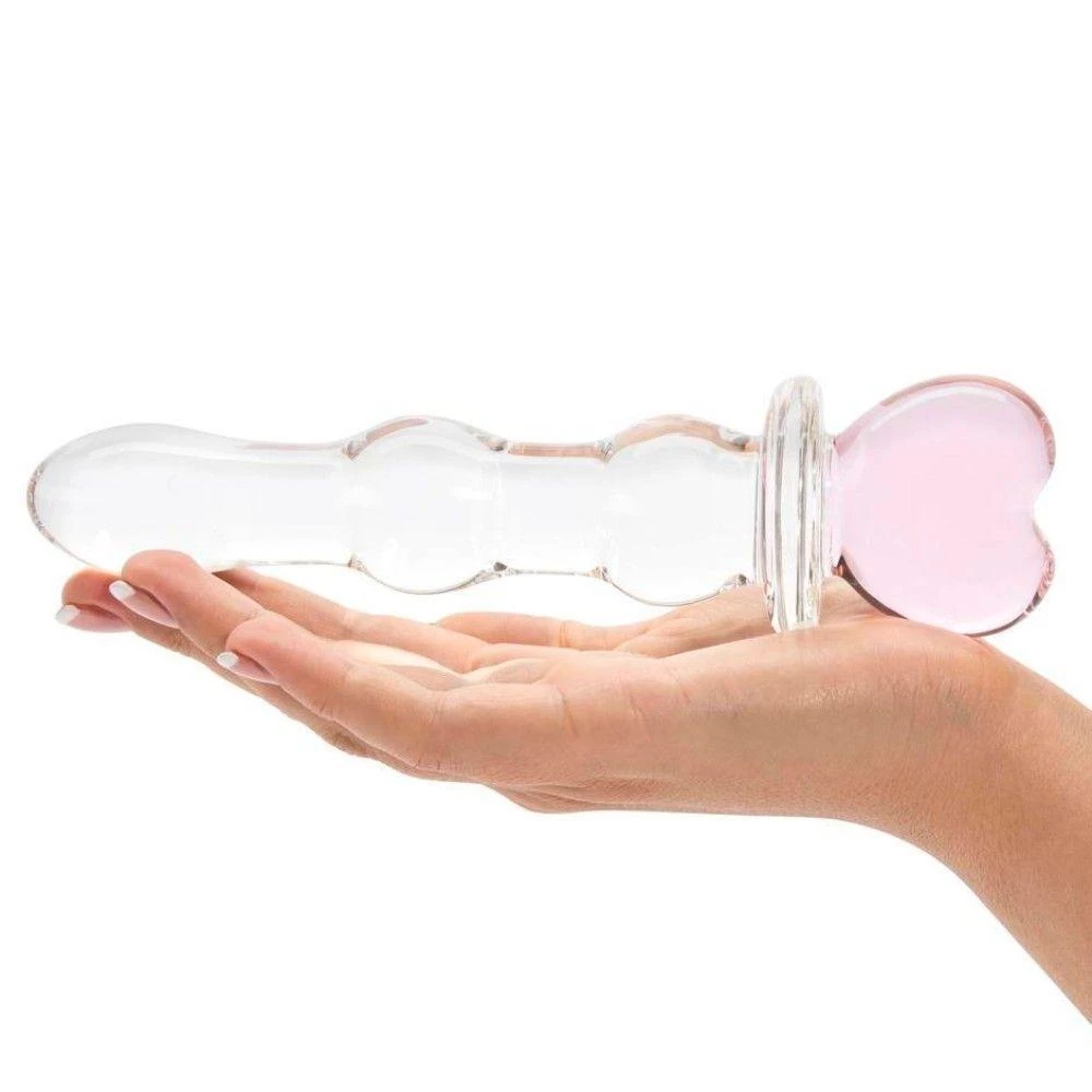 The glass heart dildo is so cute and adorable, but it has a serious side too, even if it does have a heart of glass. A sleek tapered design is accented with bulging curves in three major sections which correspond to the most enticing aspects of anal play: the head or tip, the mid-section and the base. All and any of these will give you extra tingles of pleasure and excitement as the glass heart dildo enters you, takes your breath away, then teases you again on exit. It’s a perfect design and glass is the optimal material for this design.