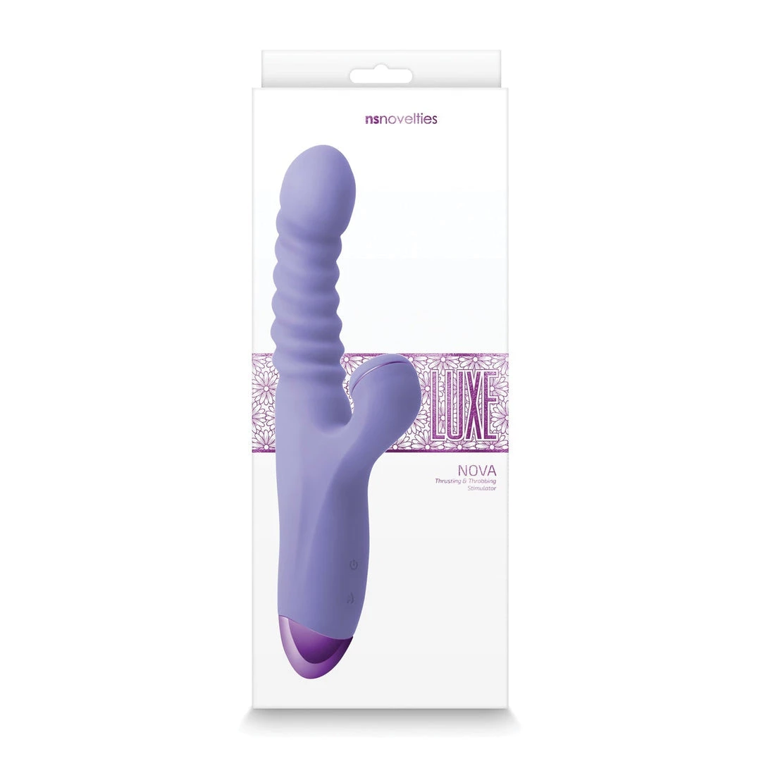 Luxe Nova is a rabbit vibe from NS Novelties, a sex toy with exciting features. The vibe has an insertable arm with thrusting action that hits the G-spot and provides internal stimulation; the external arm – the clitoral arm has a thumping feature that excites your clit with thumping sensations. The Luxe Nova also has a warming feature that quickly brings the toy to a comfortable body temperature.